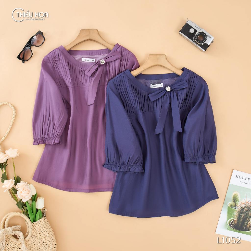 Áo kiểu thiết kế đơn giản dễ phối chất liệu Tơ Nhật cao cấp thương hiệu Thiều Hoa AN4L1052