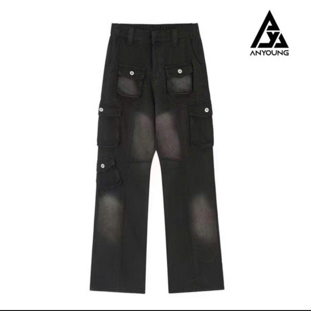Quần jean túi hộp ANYOUNG quần jean ống rộng tôn chiều cao tôn dáng cho cả nam và nữ xu hướng 2025 Menswear Pants QD619