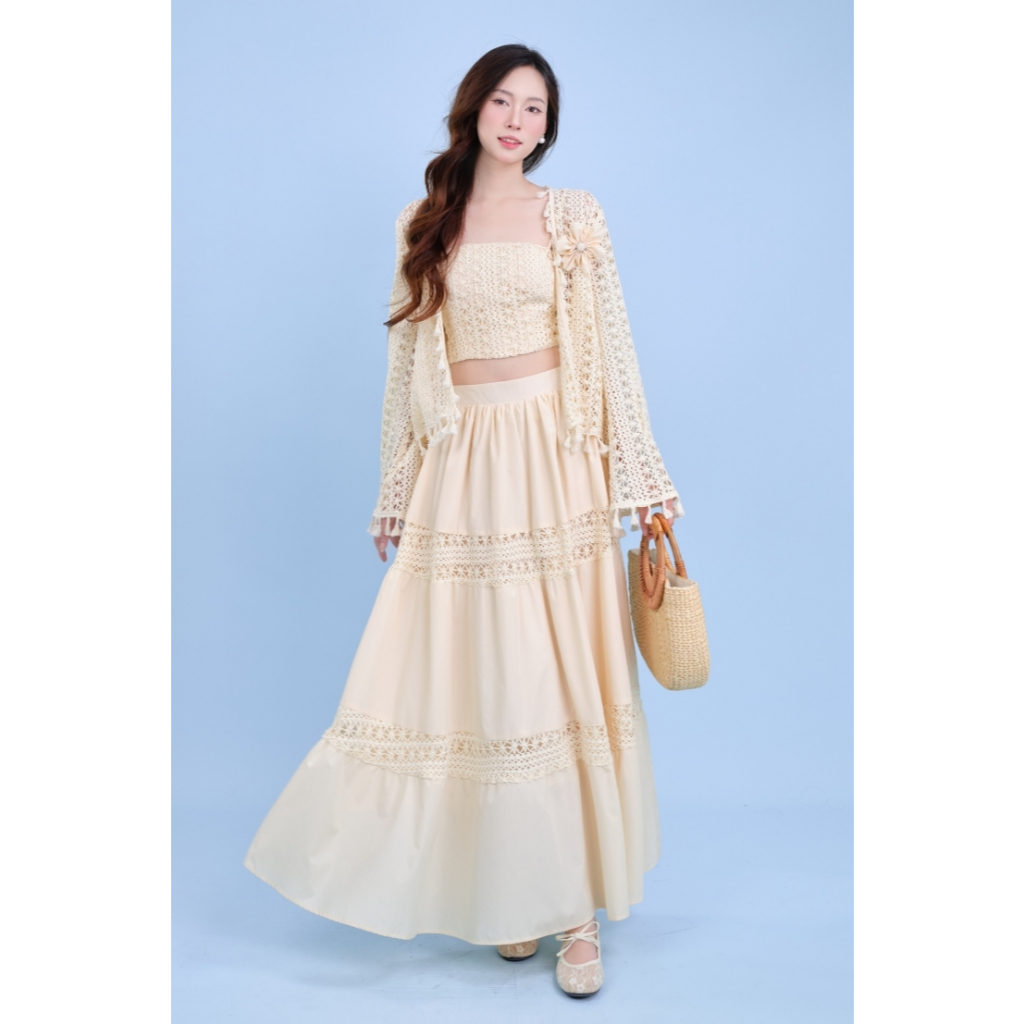 Set váy Thiên Giao thiết kế LA.NA DESIGN, combo 3 món chất lưới cotton mềm form dáng xuông nhẹ nhàng - CB182