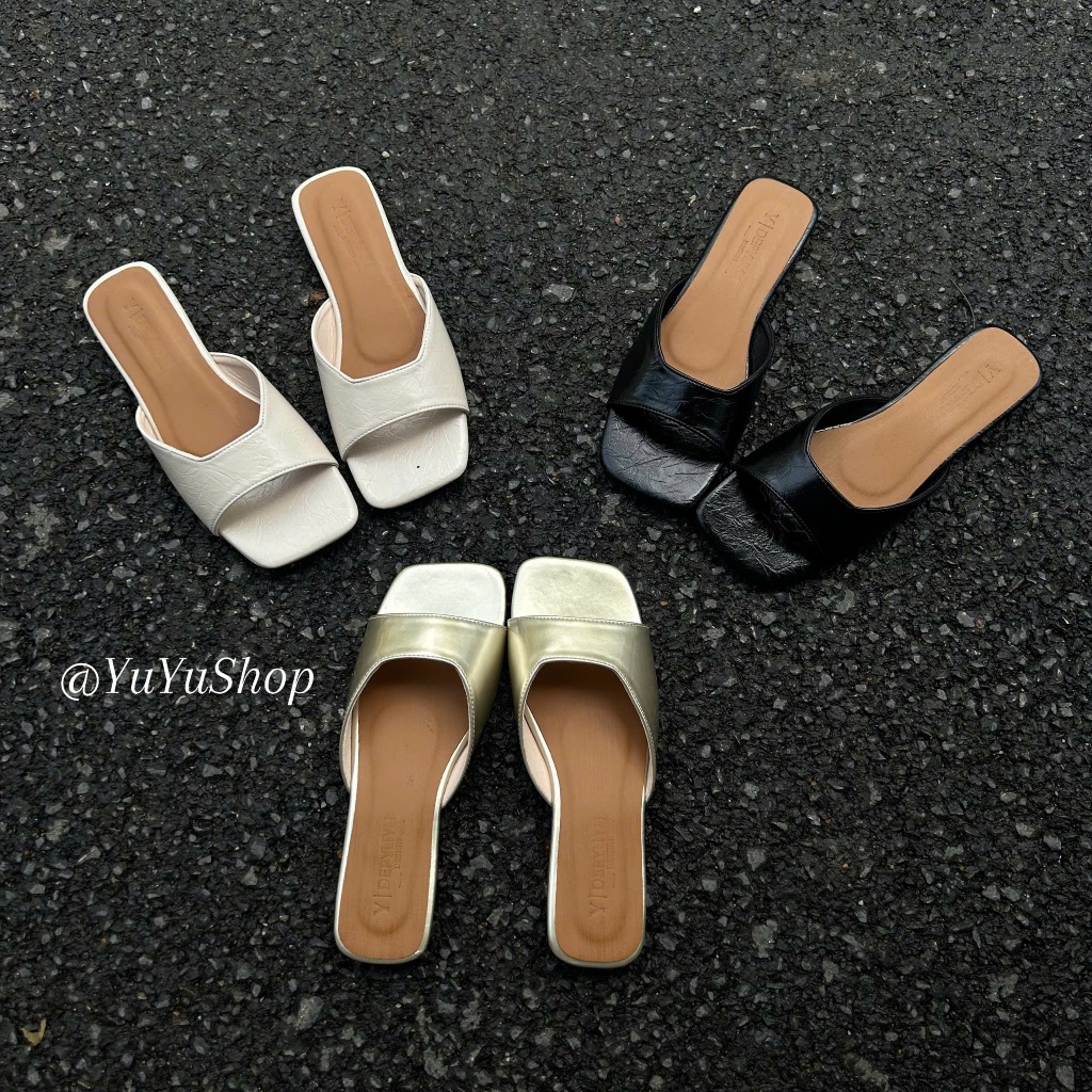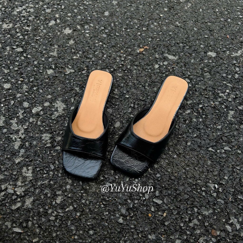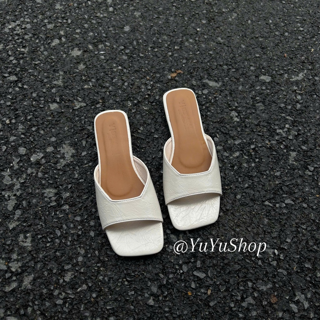 Dép nữ đế bệt mũi vuông chất liệu da mềm đi êm chân thiết kế mới hàng cao cấp