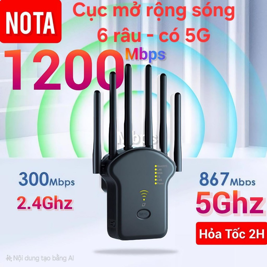 Kích wifi 6 râu 5G công suất 1200Mbps 2.4G 300Mbps Mở rộng sóng router phát wifi xuyên tường mạnh