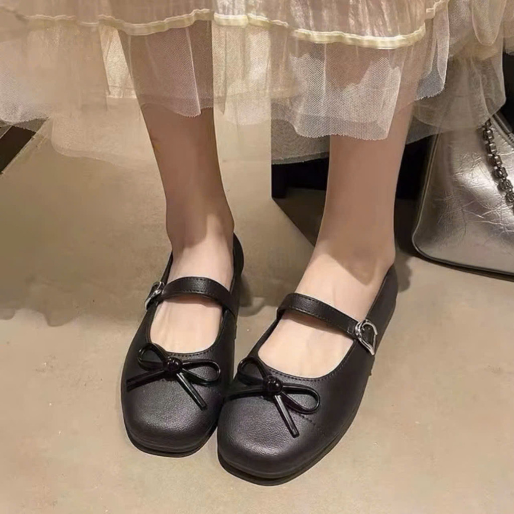 (PHOM TO LÙI SIZE )Giày búp bê nhựa nữ đế bệt quai cài Đen cao cấp GIÀY BÚP BÊ BIGSIZE