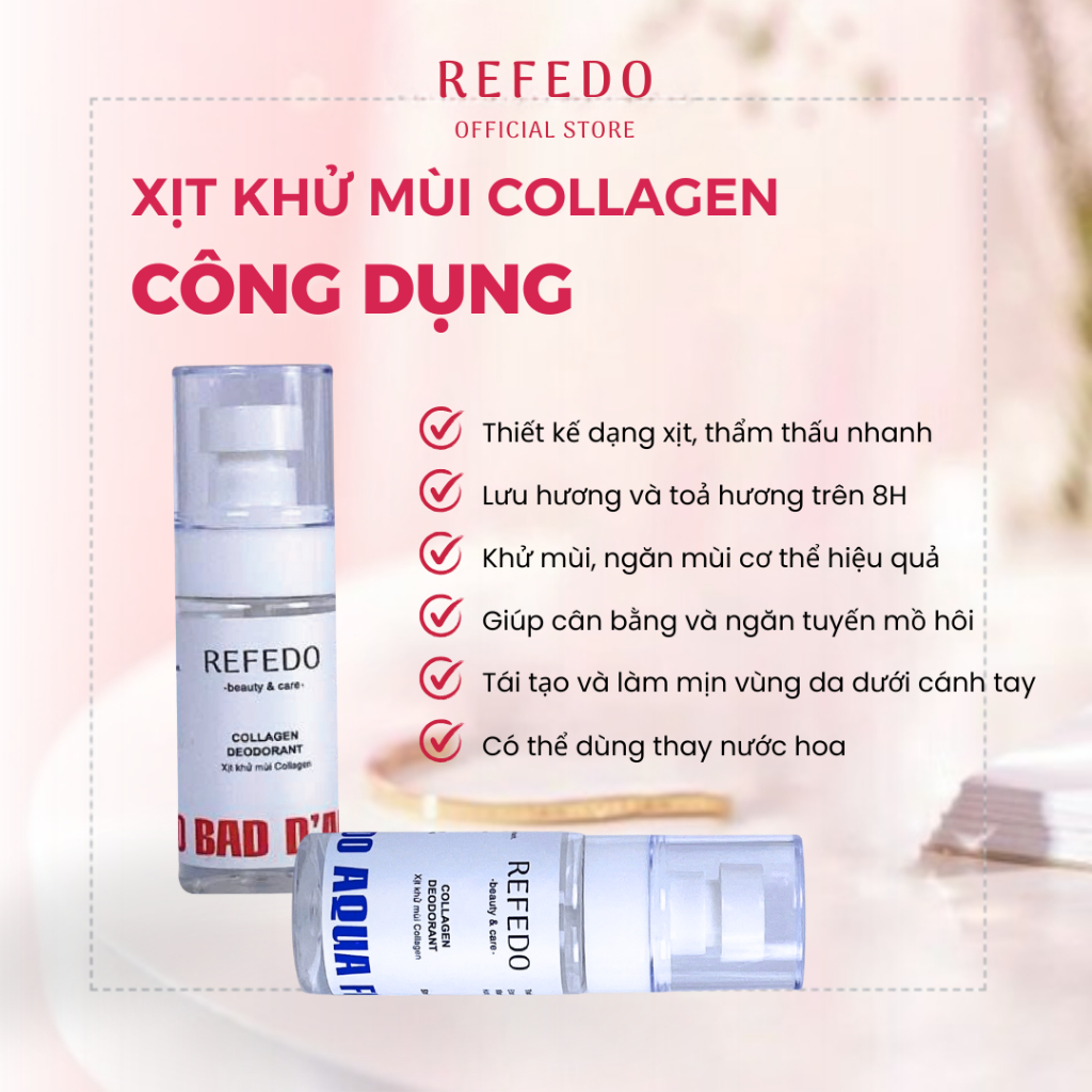 Xịt khử mùi dưỡng da collagen 3in 1 hương nước hoa Refedo sịt thơm body mist toàn thân nam nữ khử mùi hôi nách body miss