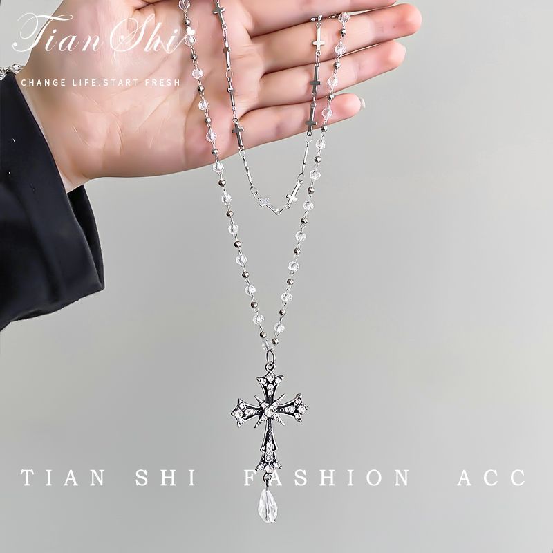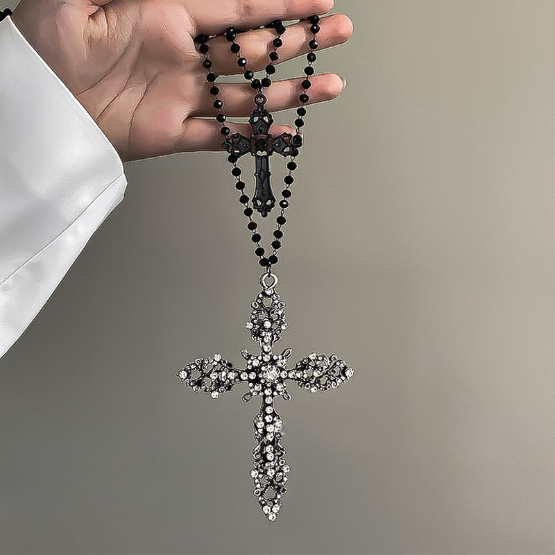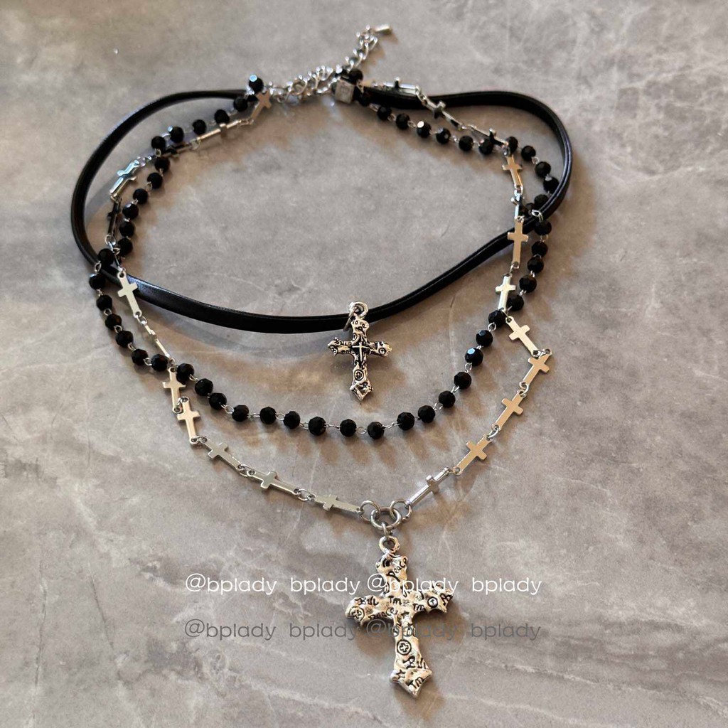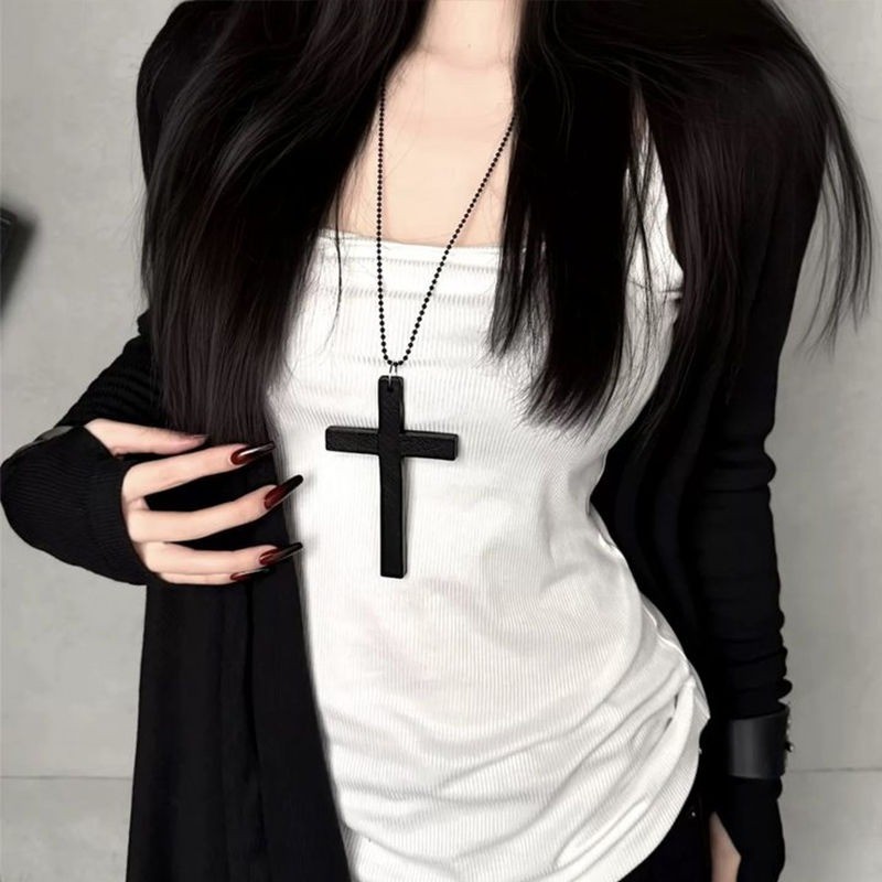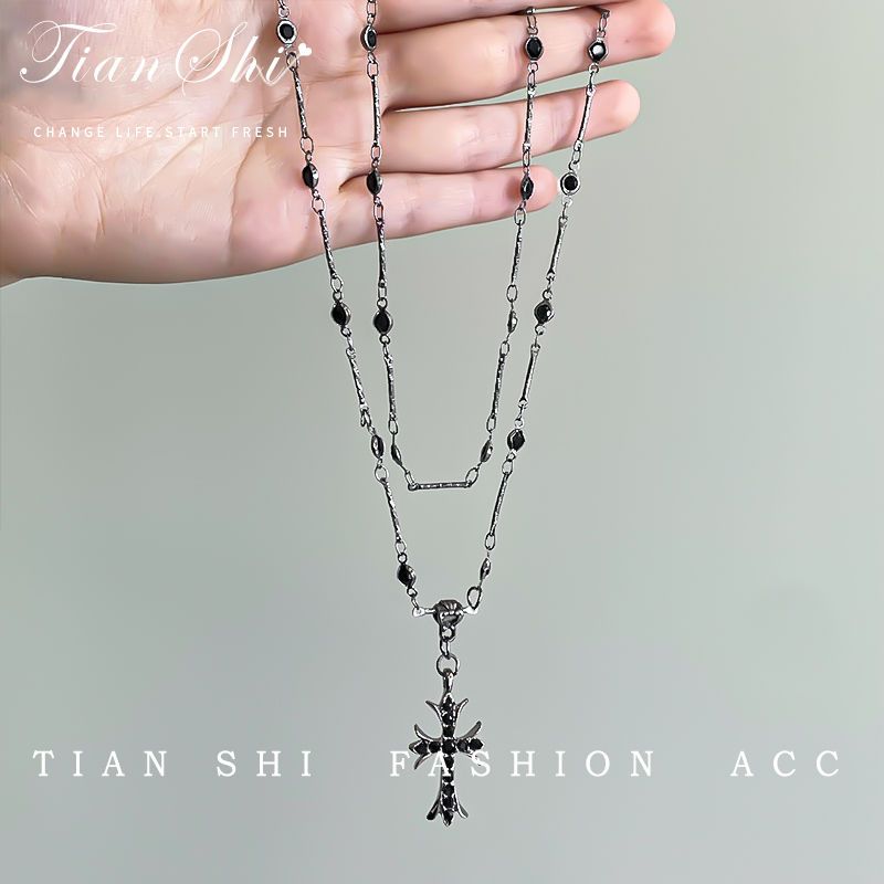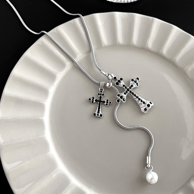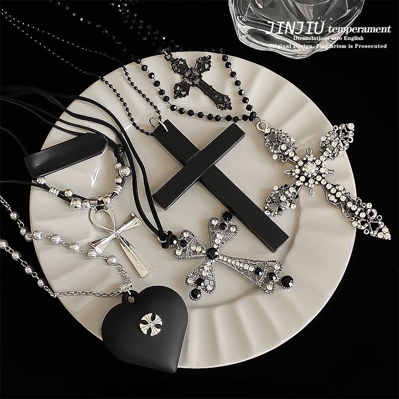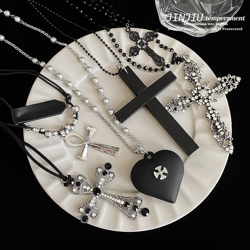 Vòng cổ nữ tình yêu cao cấp thời trang Vòng cổ chữ thập đen tối Hàn Quốc