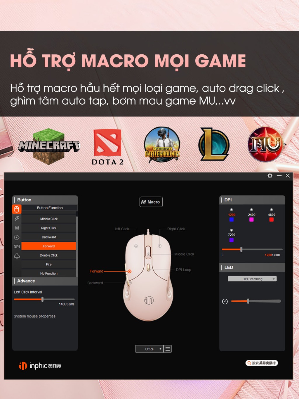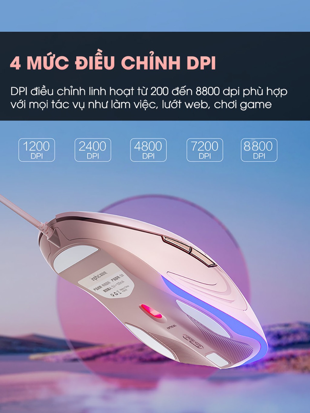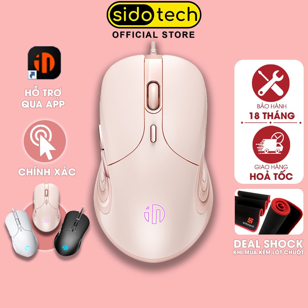 Chuột máy tính có dây cute SIDOTECH B8 hồng trà sữa silent chống ồn 6 nút bấm có app điều chỉnh cho laptop pc