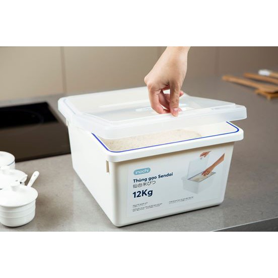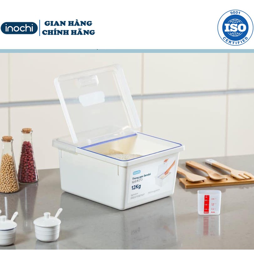 Thùng Đựng Gạo -thông minh Cao Cấp INOCHI Sendai 12 KG Nắp Nhựa Kín Kháng Khuẩn Chống Ẩm THGN12