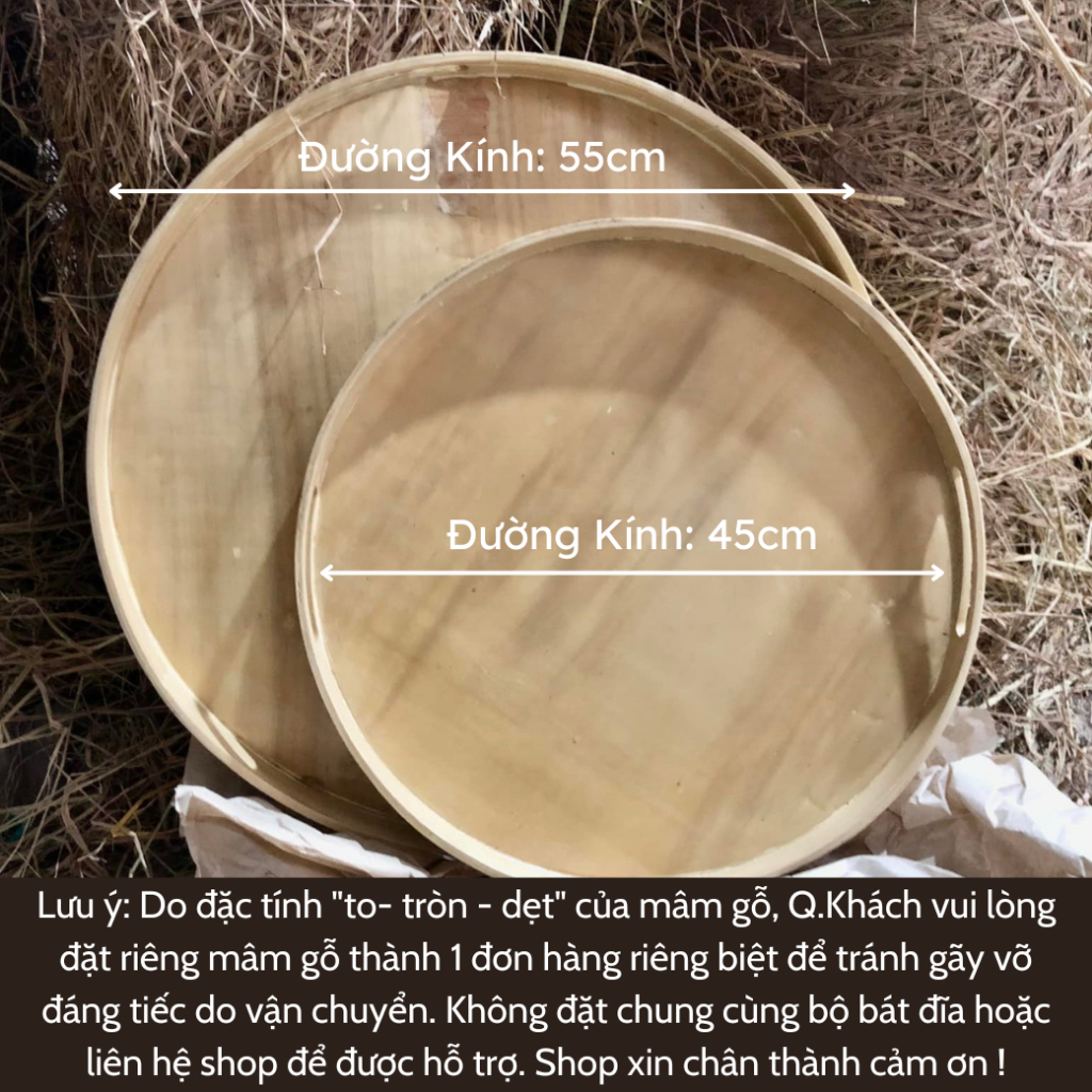 Mâm Gỗ Bộ Bát Đĩa Hoa Mặt Trời, Khay Gỗ Bộ Cúng Gia Tiên, Đựng Bát Đĩa 2 Cỡ Đường kính 45cm & 55cm