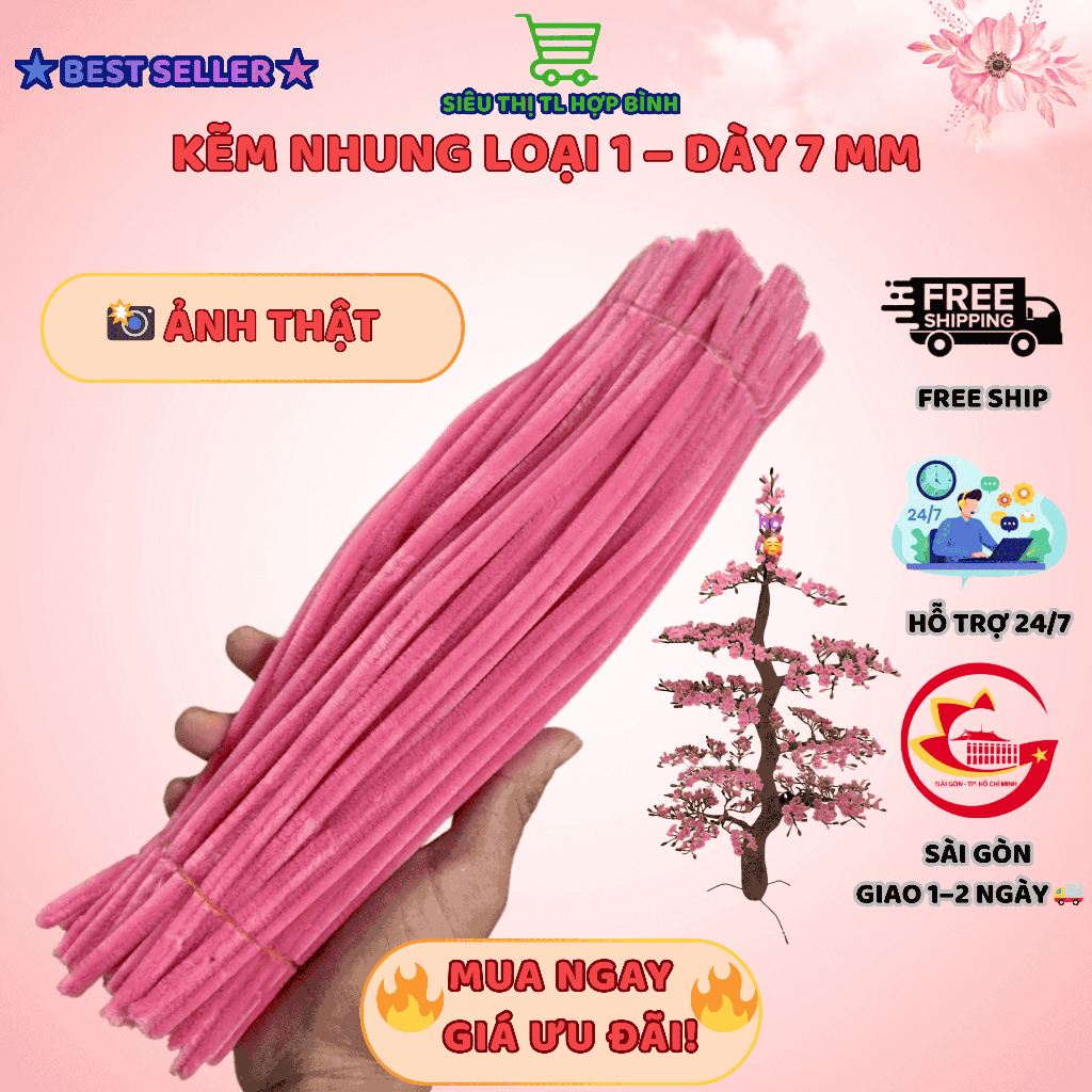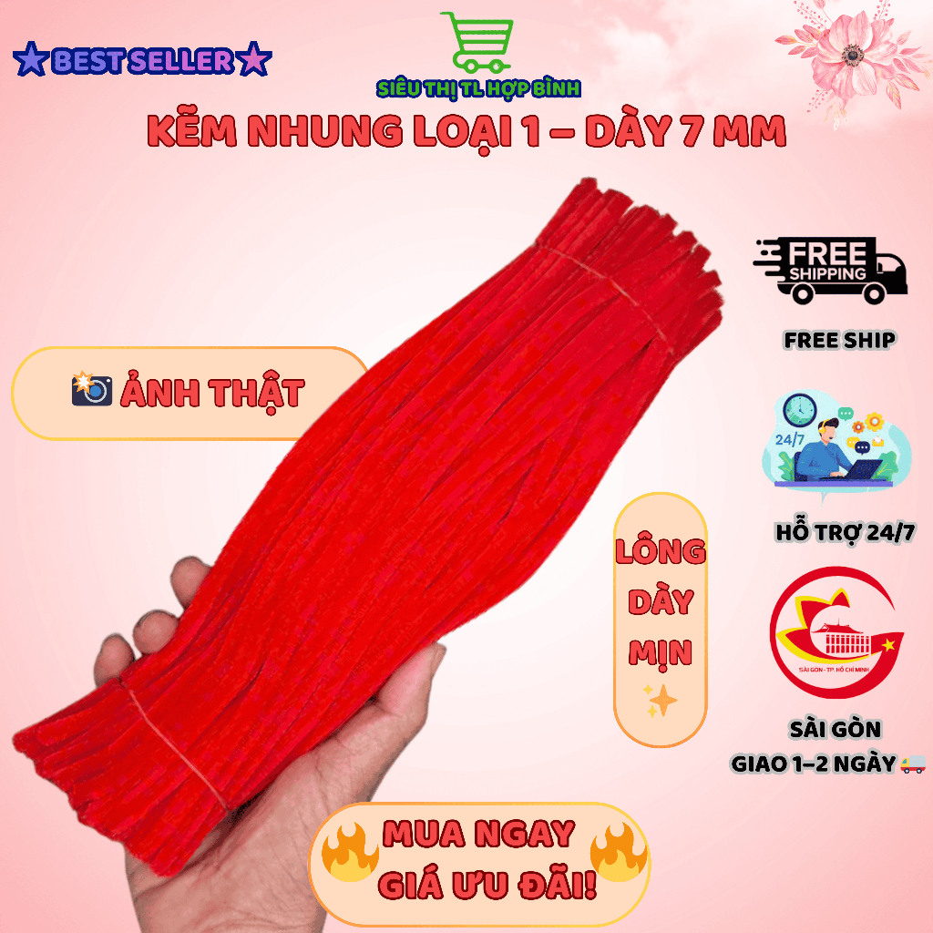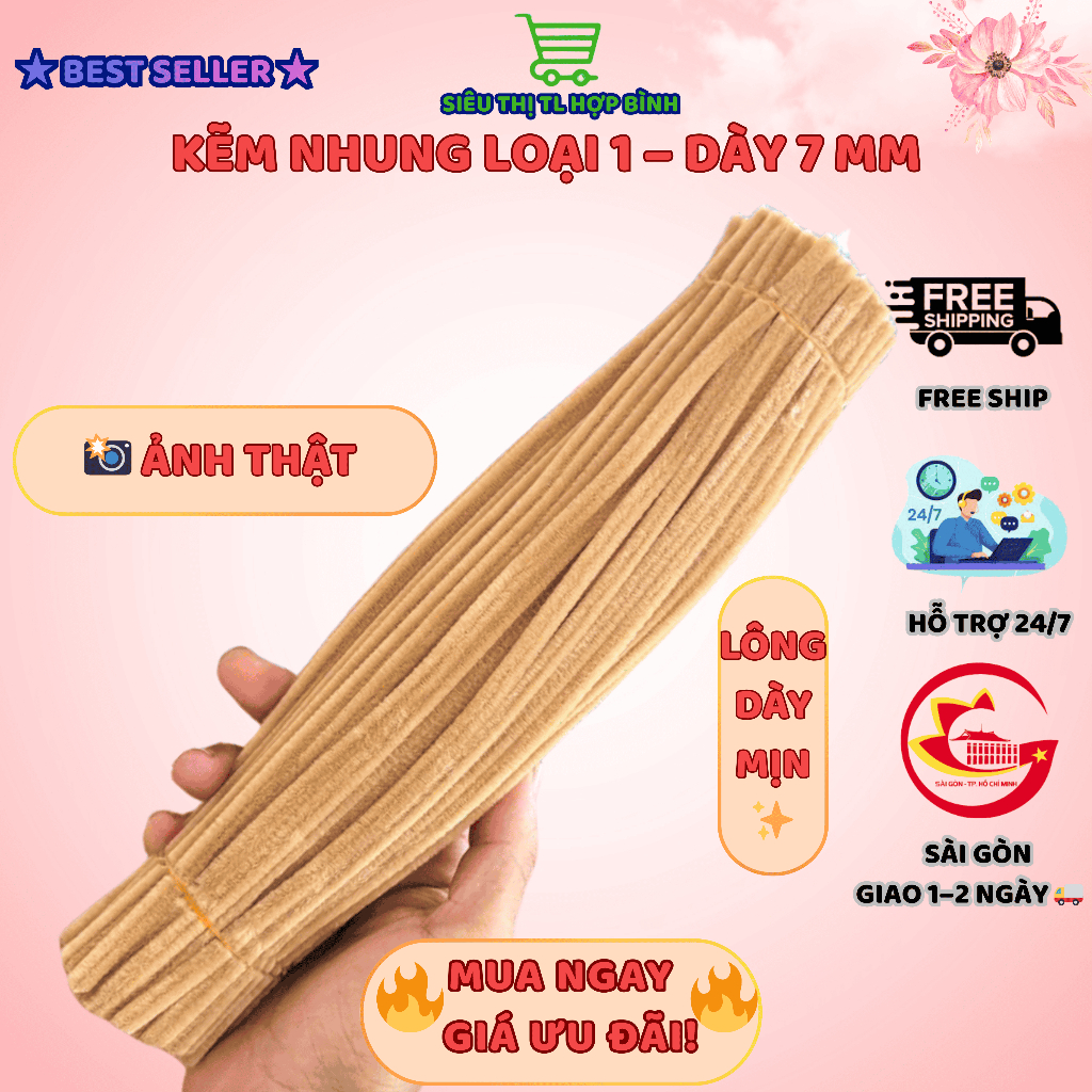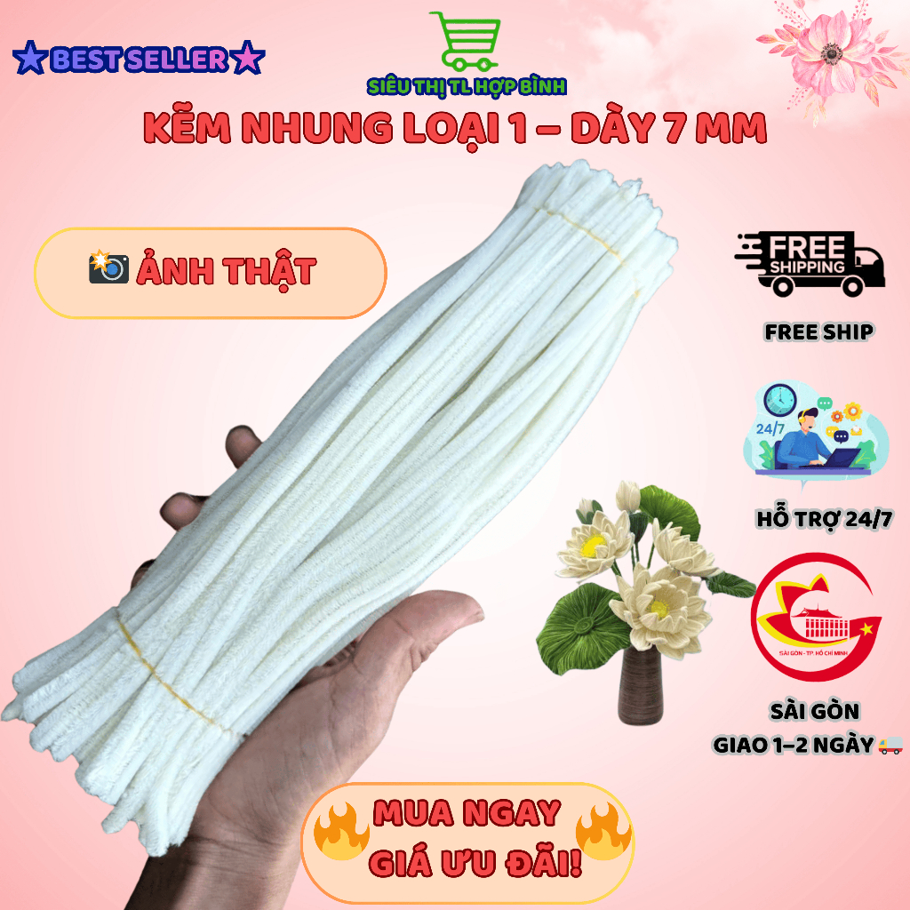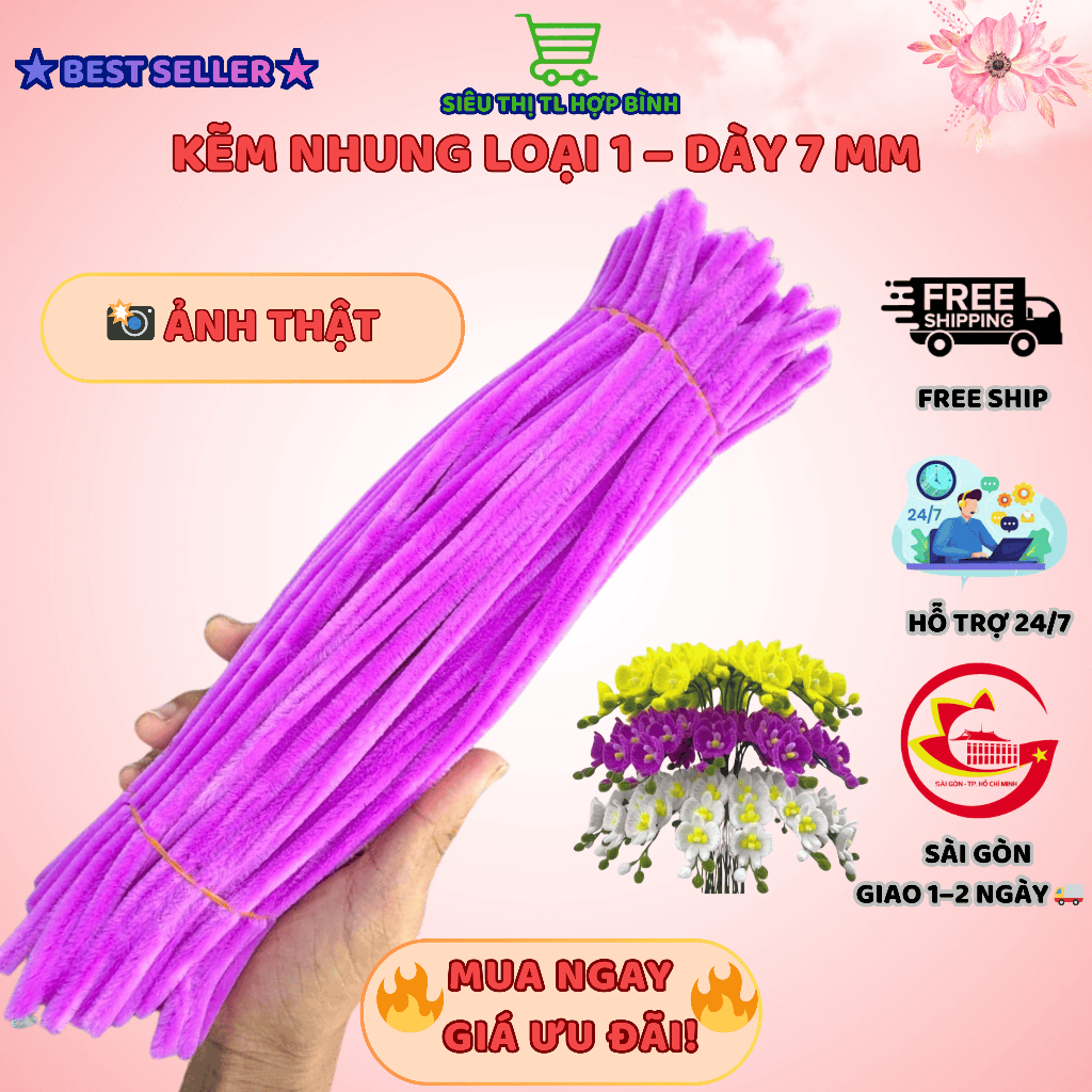 Kẽm Nhung Làm Hoa Handmade Loại 1 – Dày 7-8mm, Mịn Đẹp, Bó 50-100 Sợi DIY