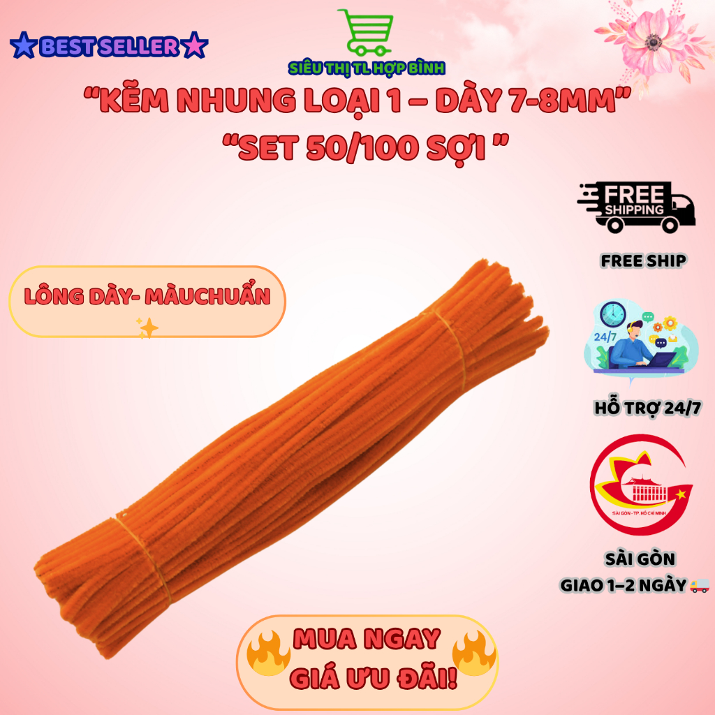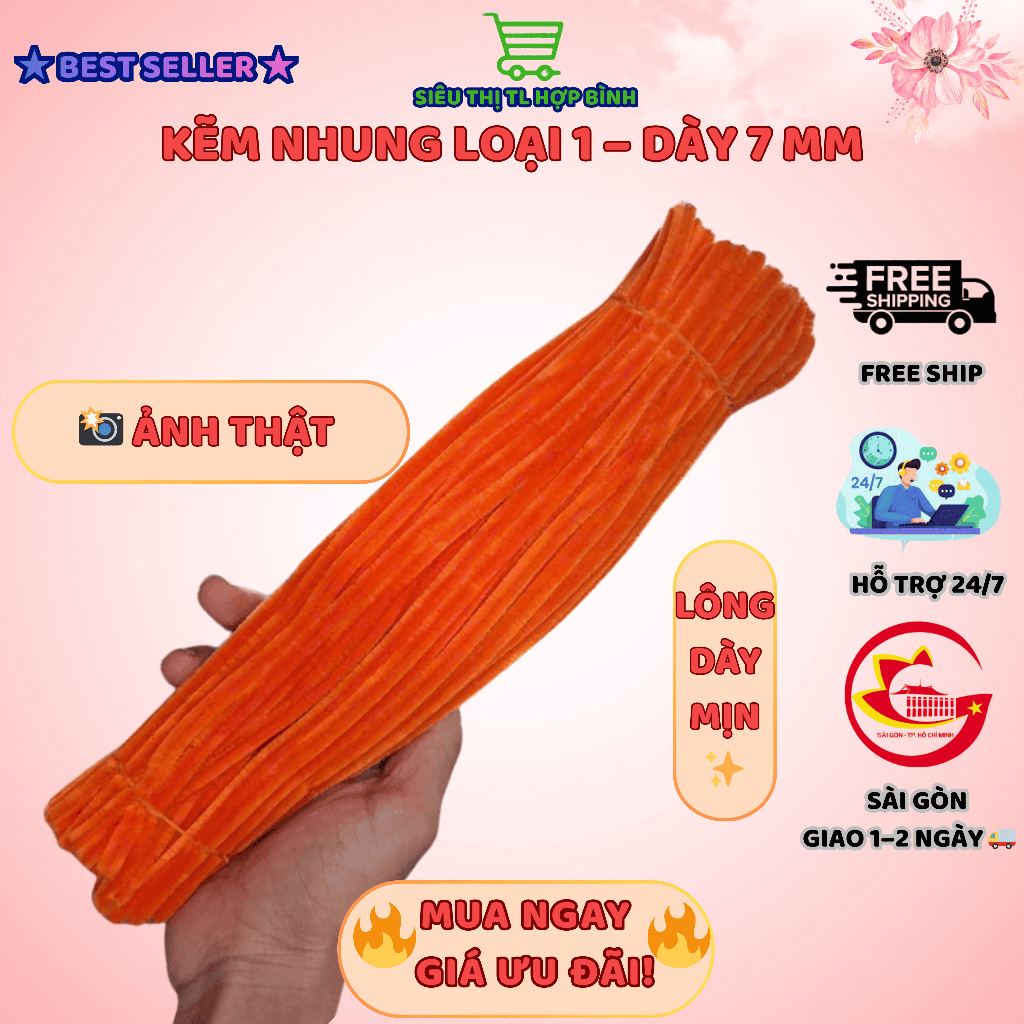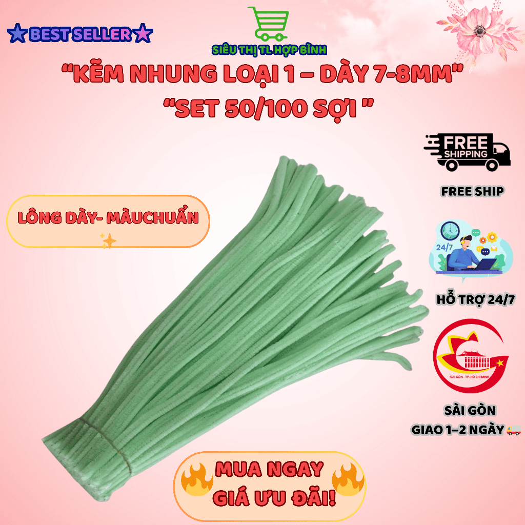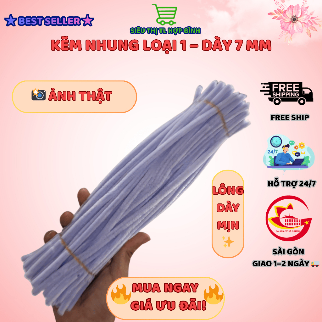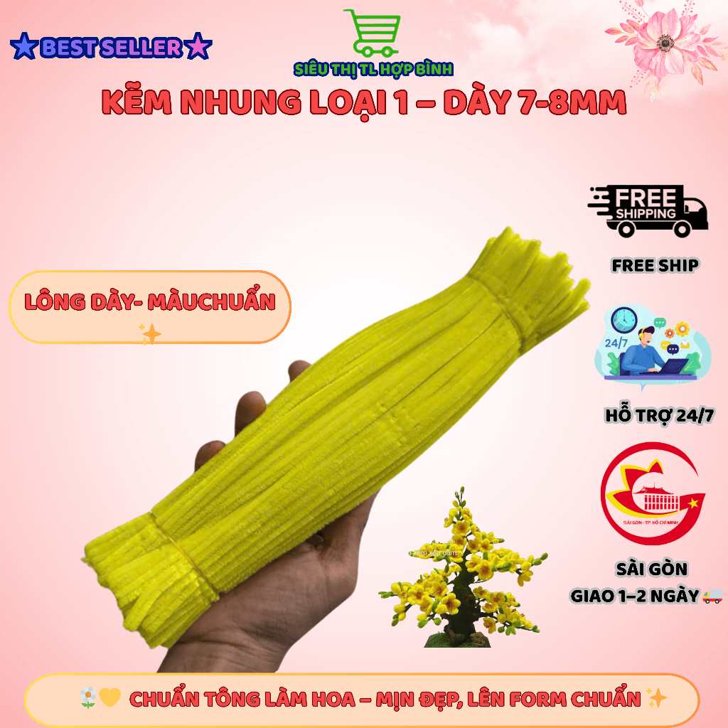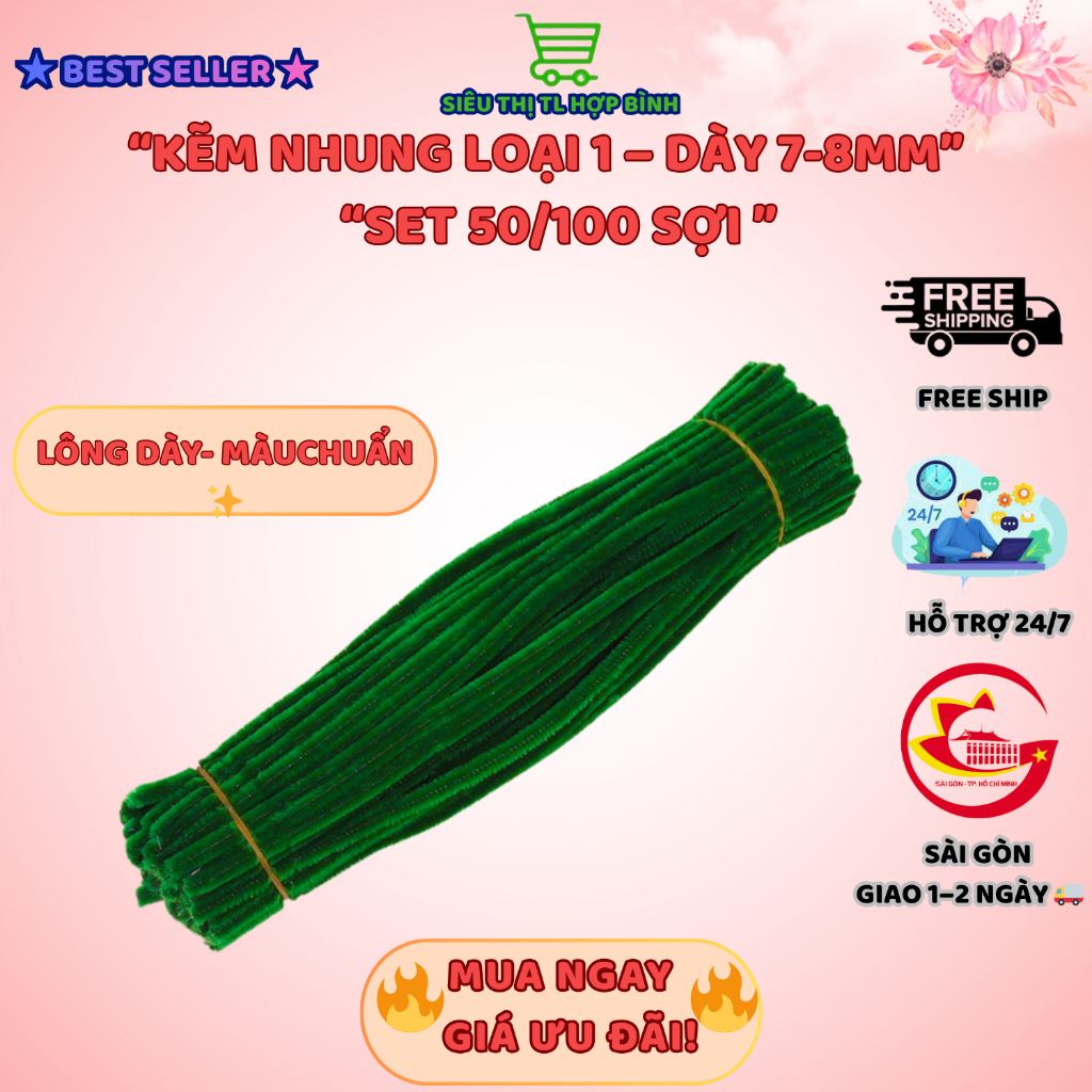 Kẽm Nhung Làm Hoa Handmade Loại 1 – Dày 7-8mm, Mịn Đẹp, Bó 50-100 Sợi DIY
