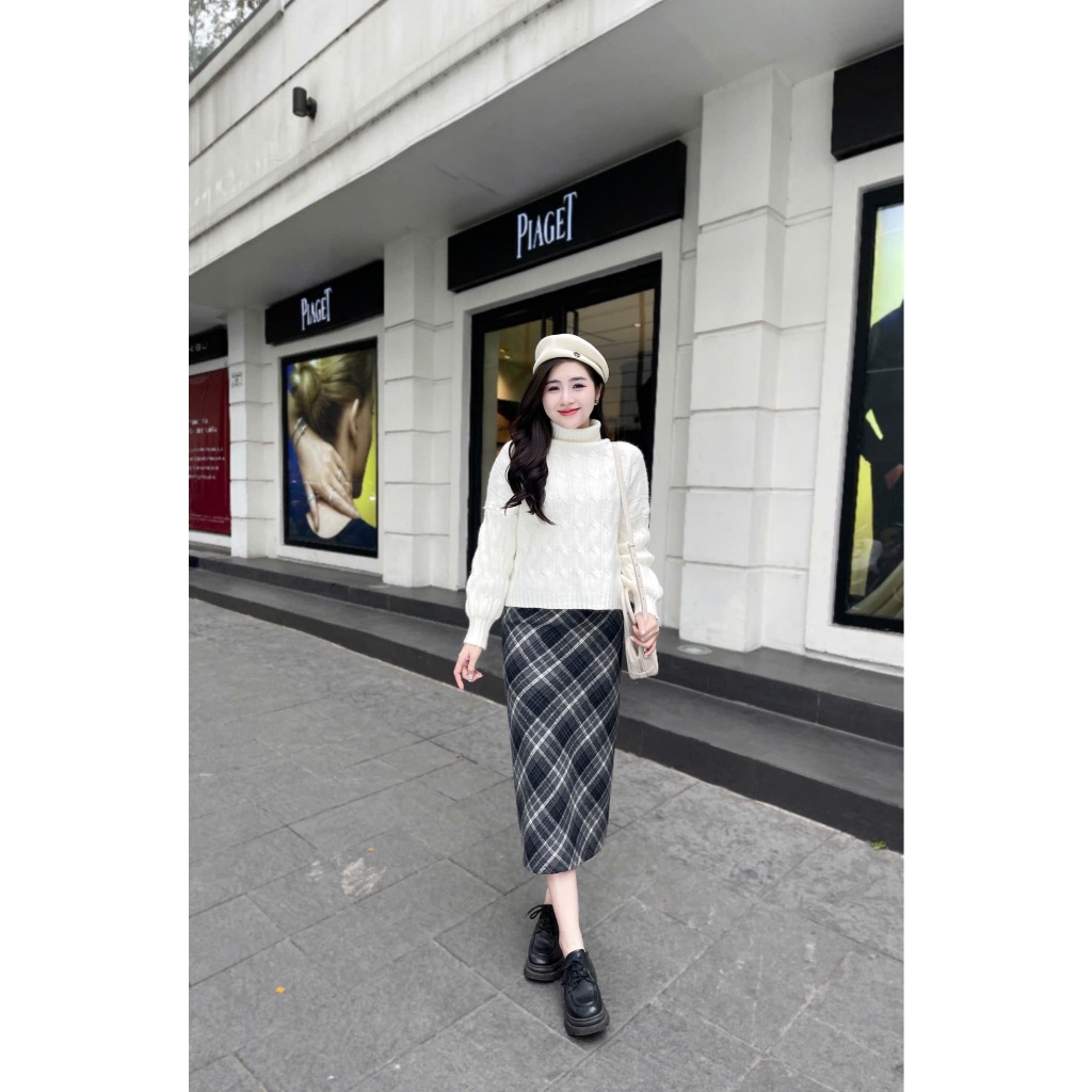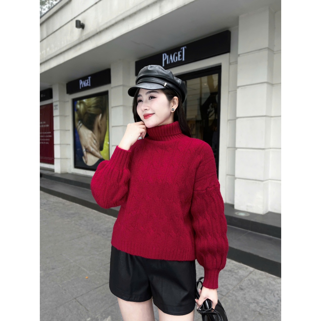 Áo len nữ Evalover mã 603, cổ lọ họa tiết vặn thừng dài tay hàng loại 1 chất dầy dặn, ấm áp