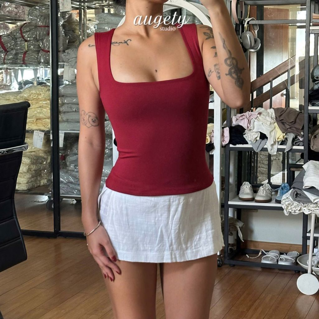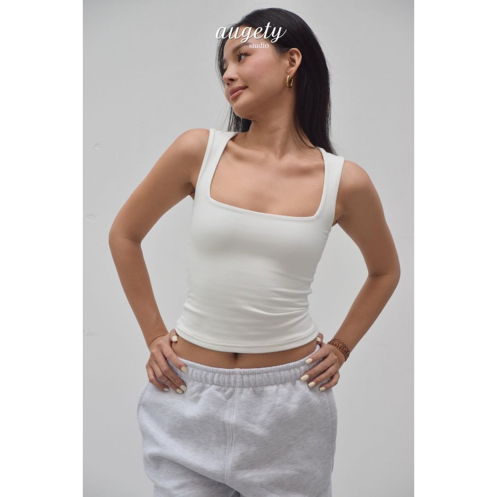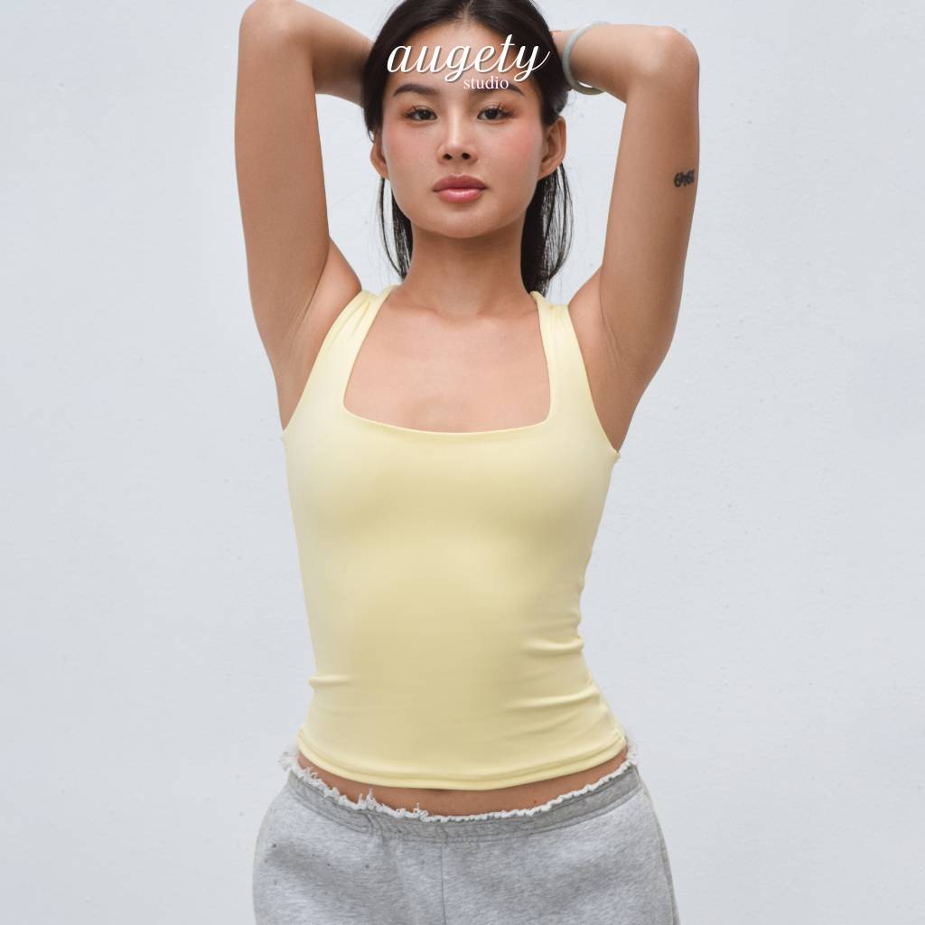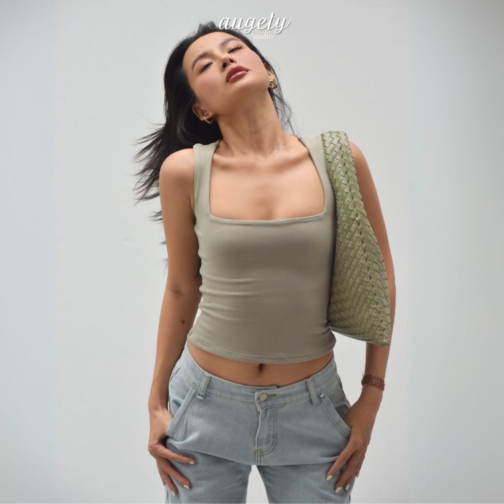 Áo Ba Lỗ Ôm Cổ Vuông Chiết Eo Vải Thun Cao Cấp Augety Studio HARPER Tanktop