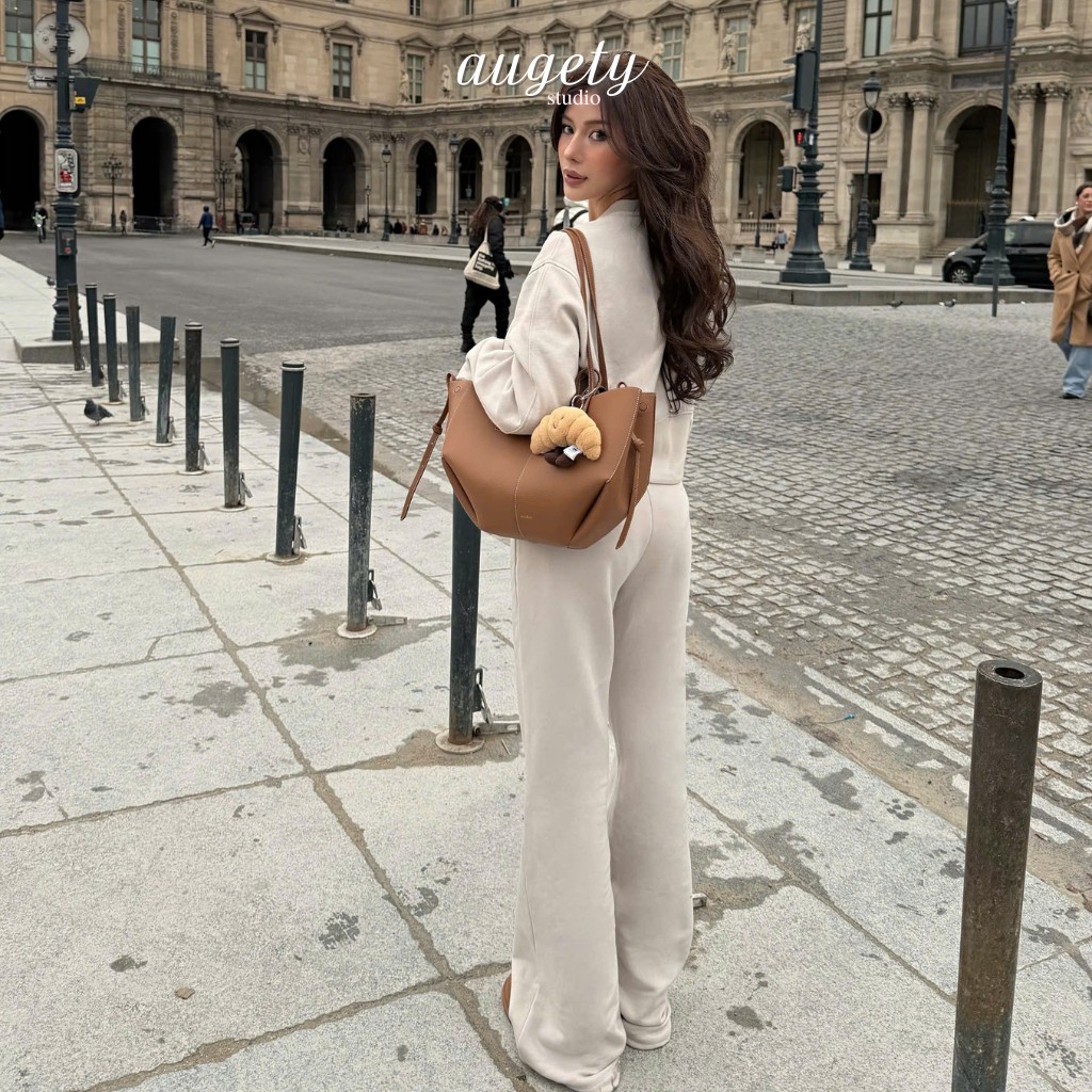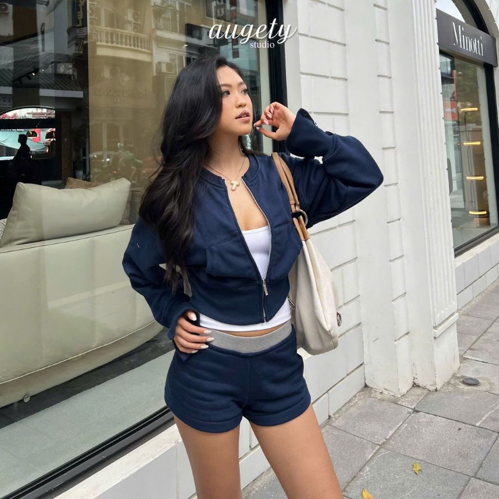 Áo Khoác Nỉ Bông Dáng Bomber Ôm eo Tay Bo Gân Có Nút Cài Augety Studio, Nora Sweat Jacket