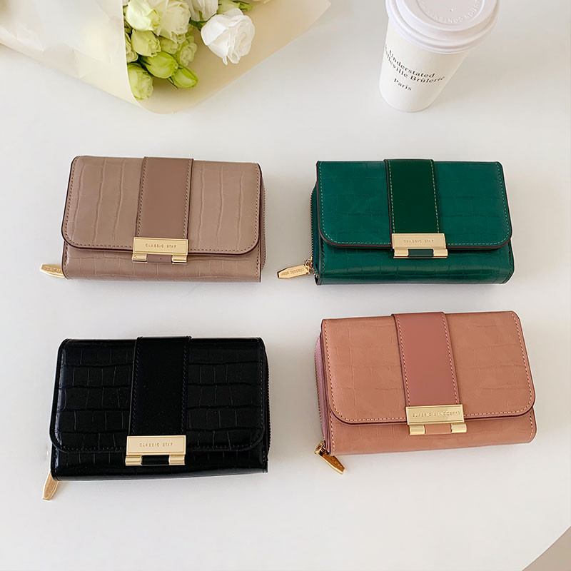 Ví nữ cao cấp thời trang cổ điển Hộp đựng thẻ đa năng có khóa sức chứa lớn Ví đựng tiền xu