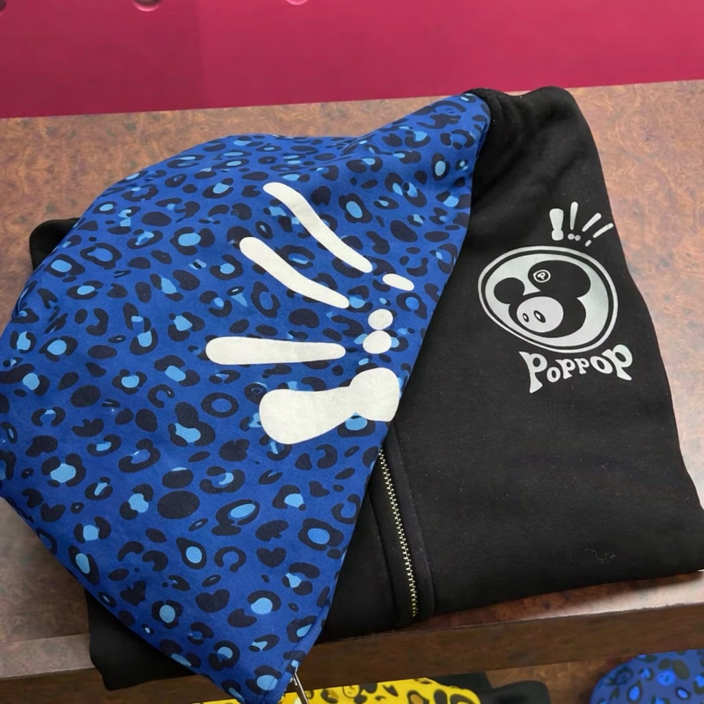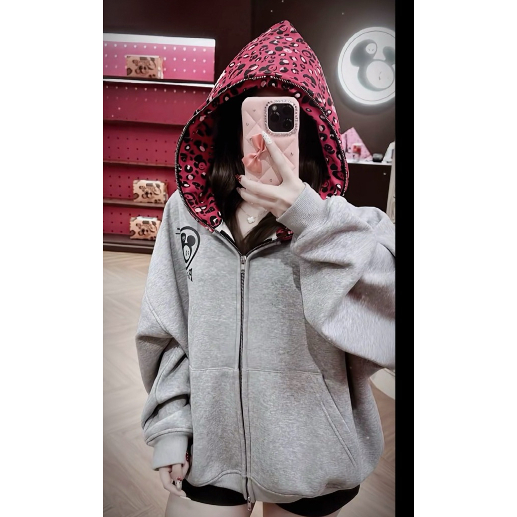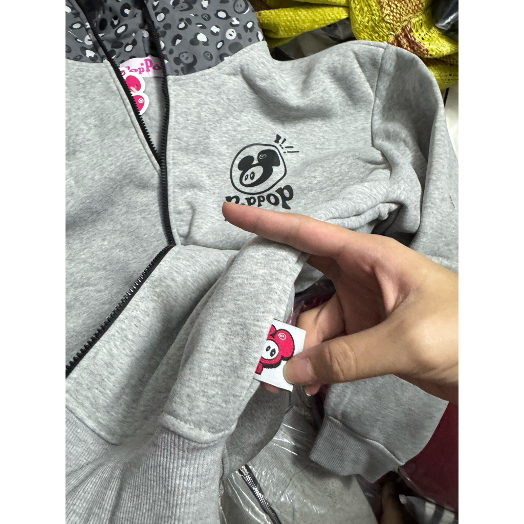 ÁO HOODIE ZIP POPPOP HIHI PHỐI NÓN IN BEO CAO CẤP LOCAL BRAND Màu Xám / Đen