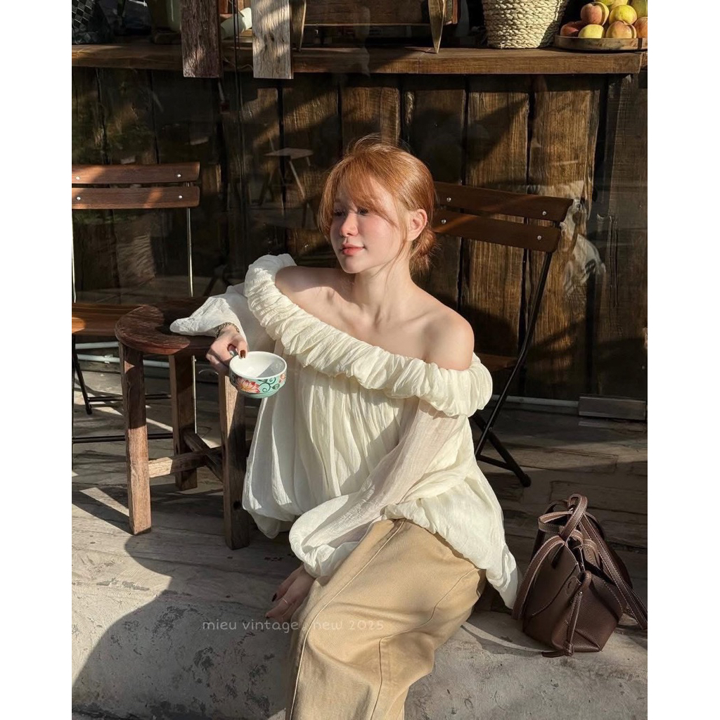 [ HÀNG SẴN] Áo trễ vai bí nhún bèo tay bồng chất voan tơ 2 lớp ADORA TOP