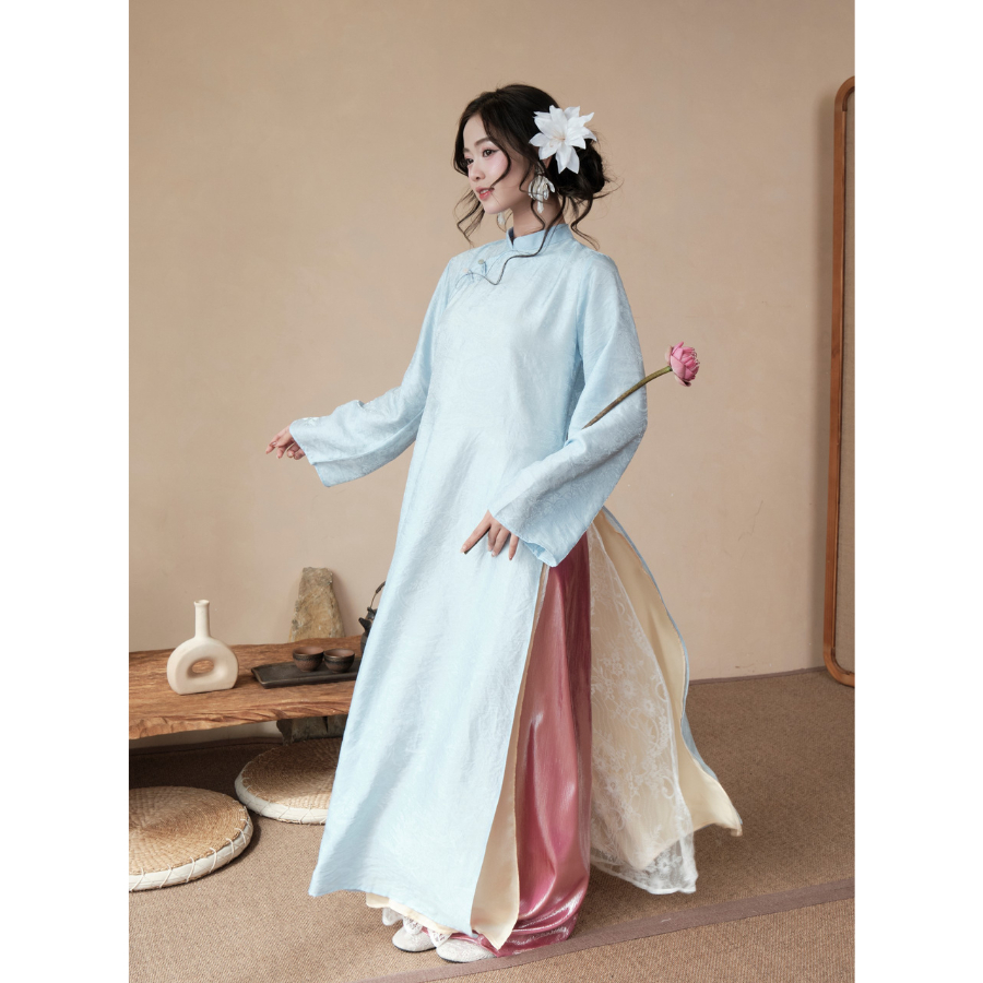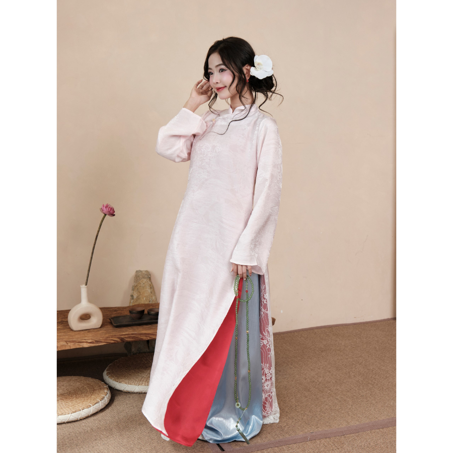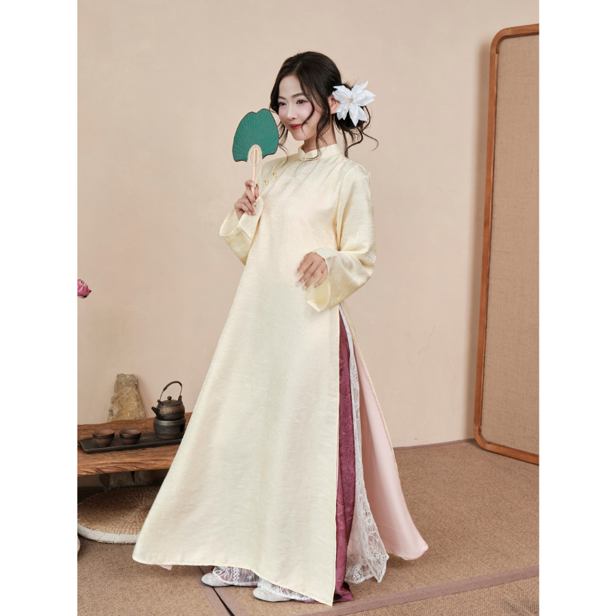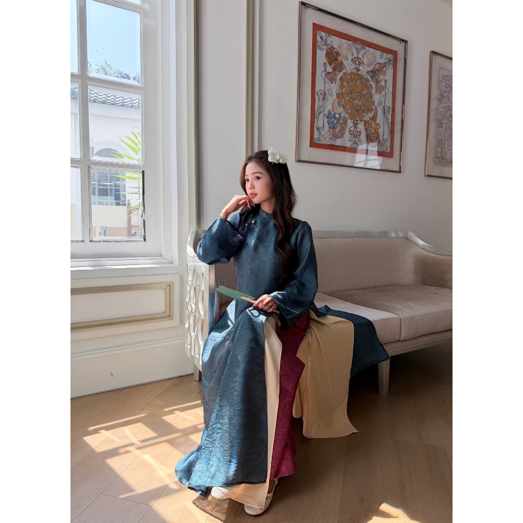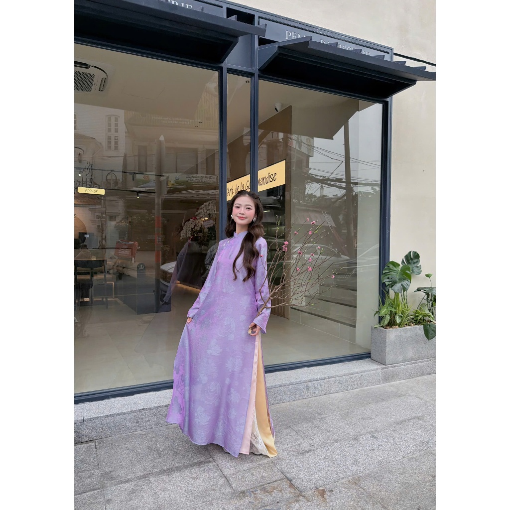 BST 2026 Áo dài Óng Ả 4 tà AD03 vải tơ tằm Chiết Giang lót lụa Hàng Châu dáng suông dài thiết kế