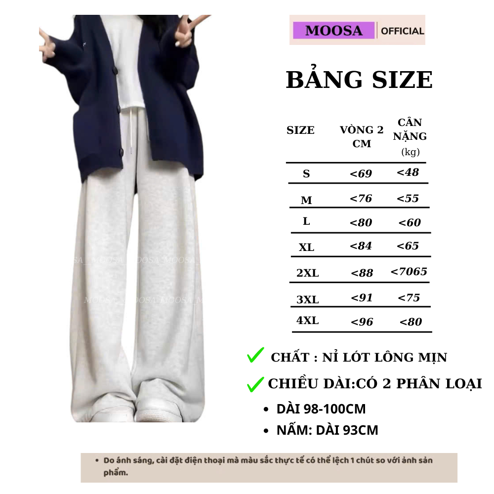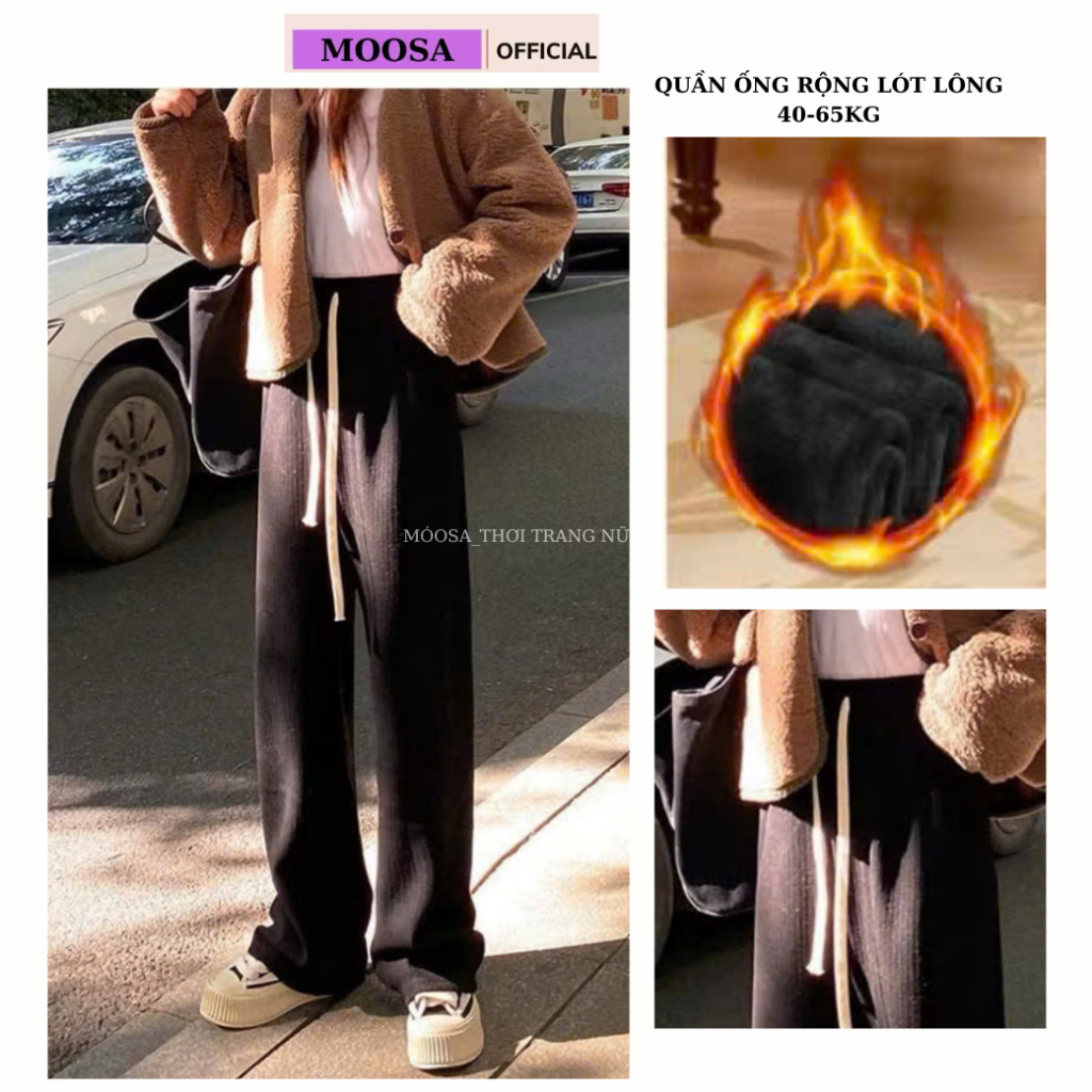 Quần Ống Rộng Nỉ Lót Lông Moosa Chất Lông Dày Ấm Đại Hàn Giữ Ấm Mùa Đông Q031