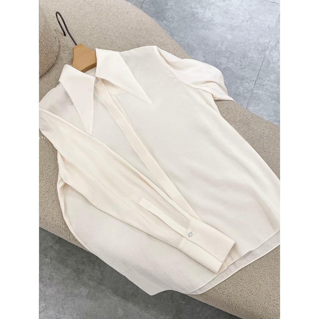 Áo sơ mi nữ cổ nhọn, áo sơ mi thiết kế, á sơ mi dài tay thanh lịch sang trọng_HA70