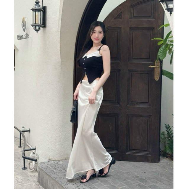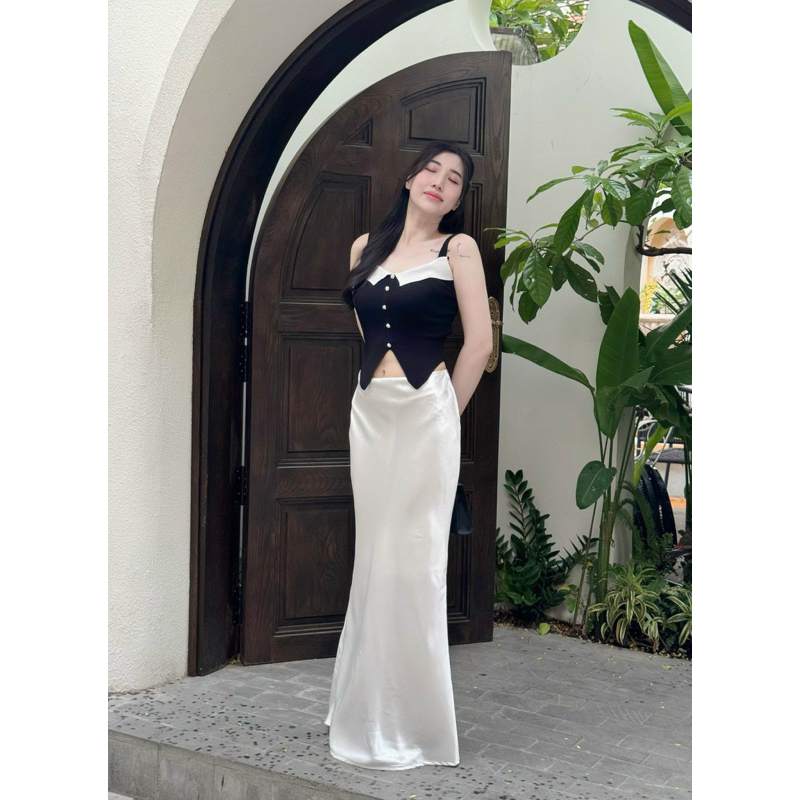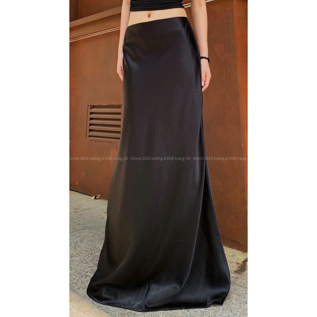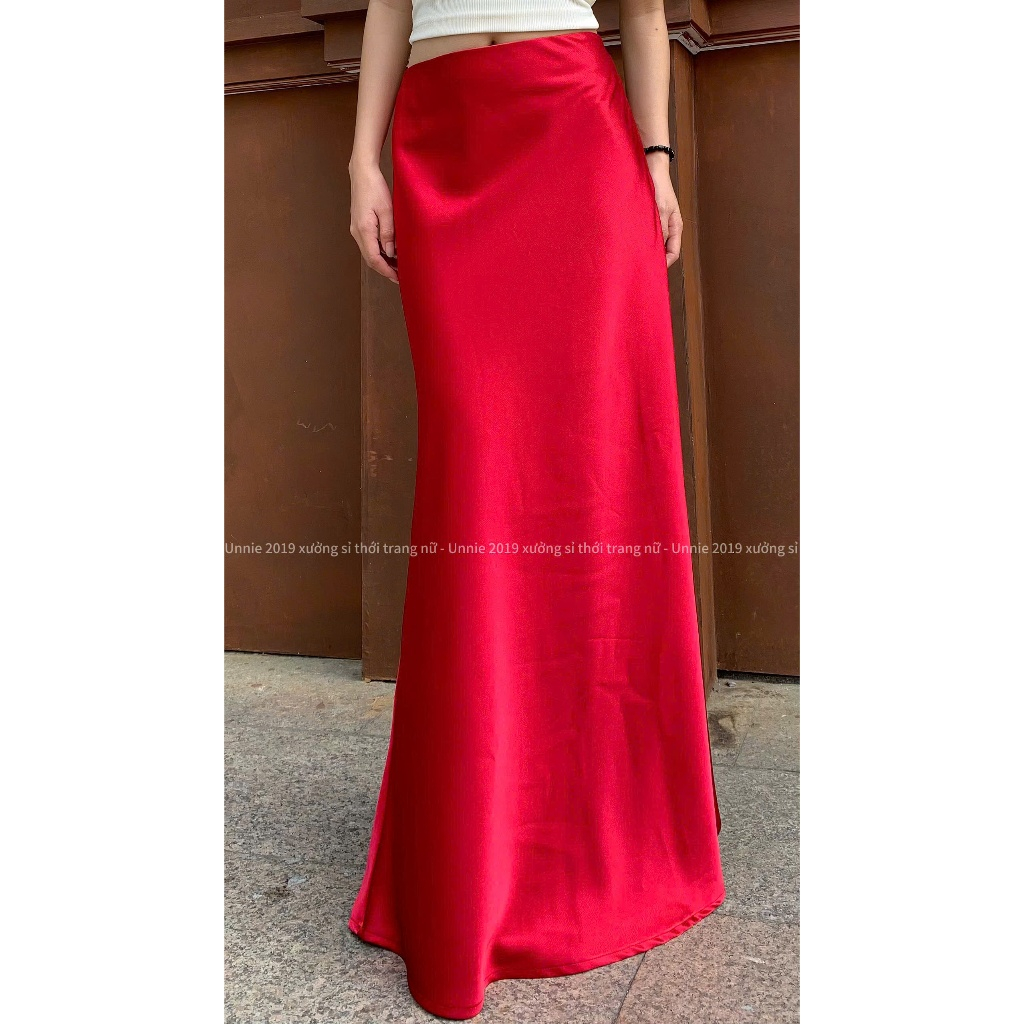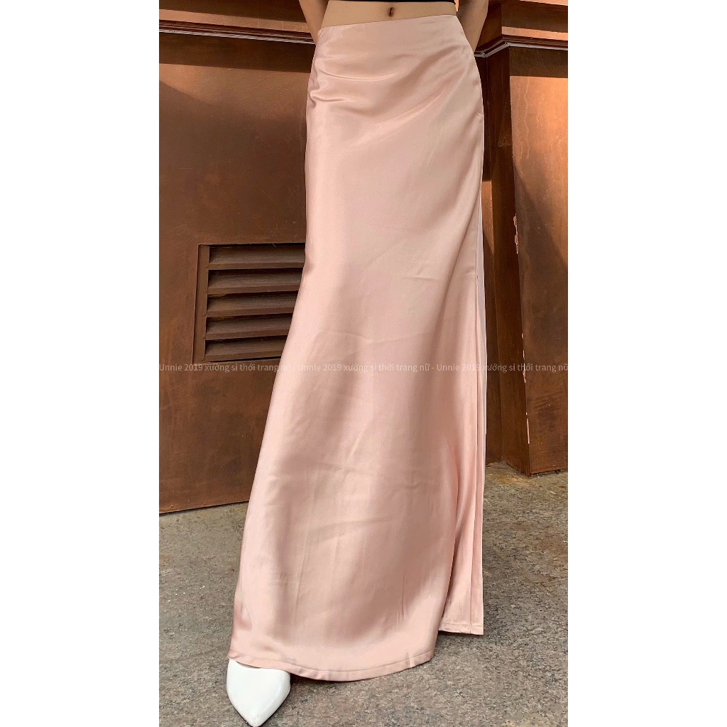 ( Lụa 2 lớp dài 100cm ) Chân váy lụa dáng đuôi cá sang trọng Unnie Váy lụa a dài tôn dáng