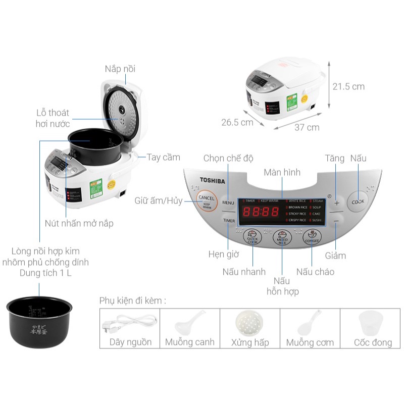 Nồi cơm điện tử Toshiba 1L/1.8L RC-10DH2PV(W)/RC-18DH2PV(W) - Hàng chính hãng |HỎA TỐC HCM|