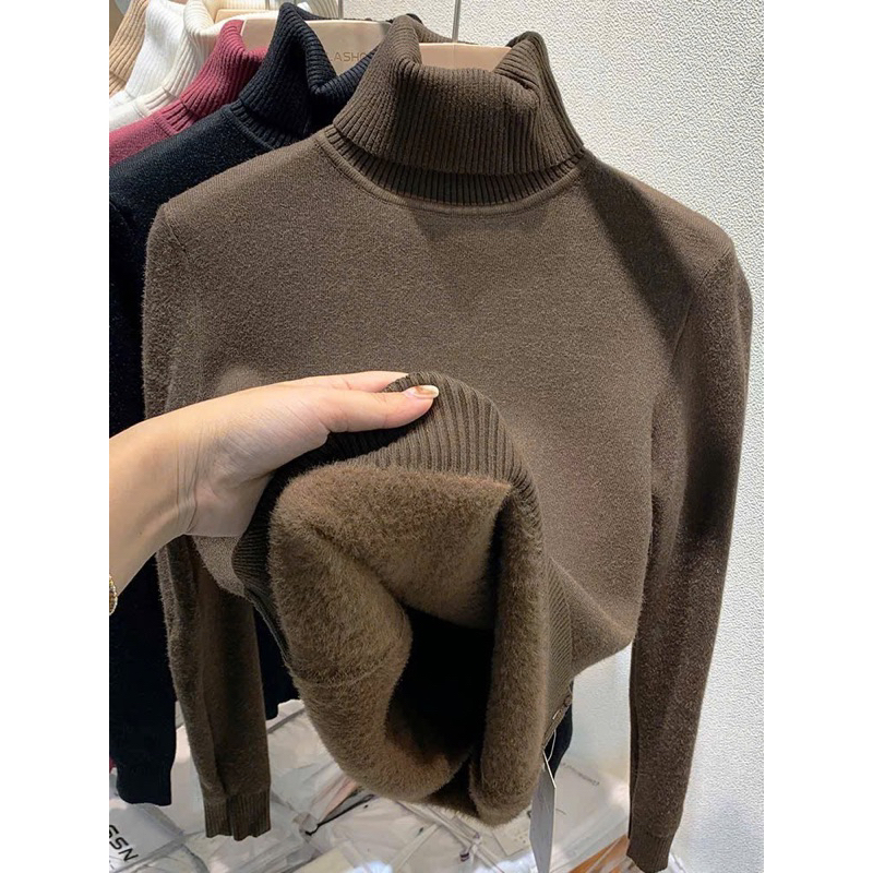 Áo len giữ nhiệt nam nữ lót lông cừu siêu ấm phối cao cổ hàng QC loại 1-TD090