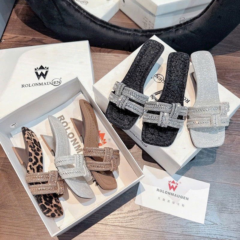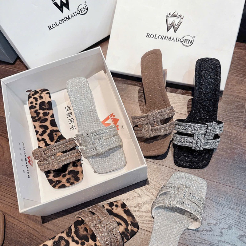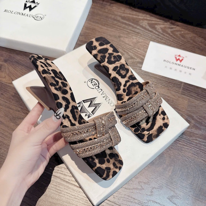 NS1 Guốc cao gót 2 quai đá đan BẢN mũi vuông GÓT PHÁP - Bonita Shoes G290
