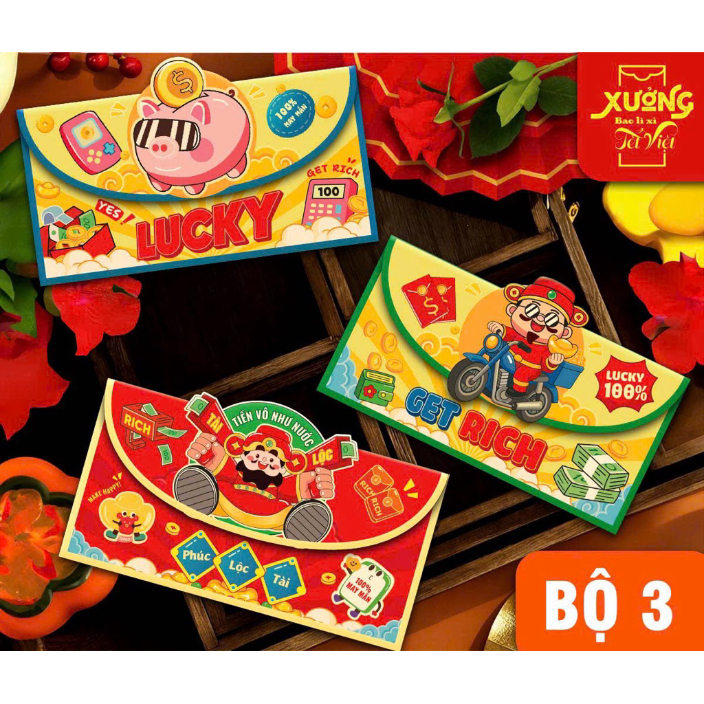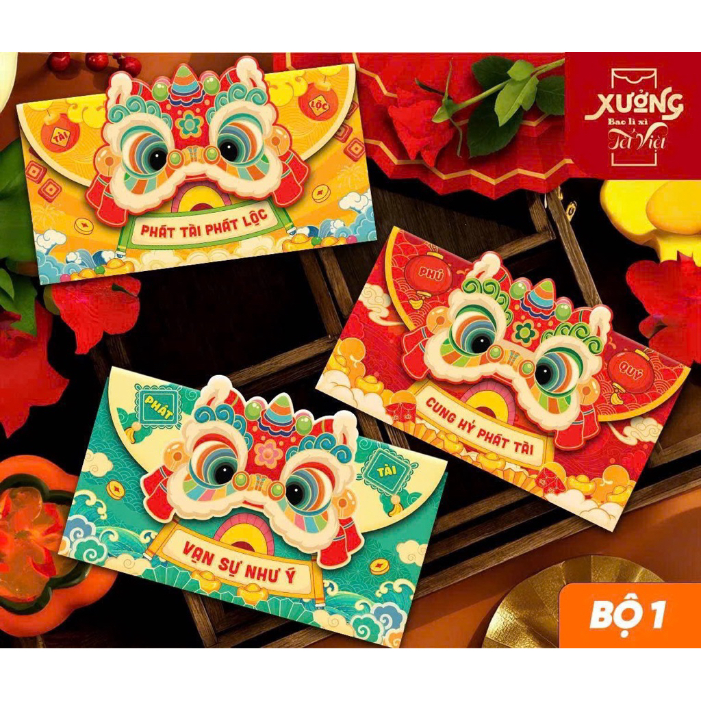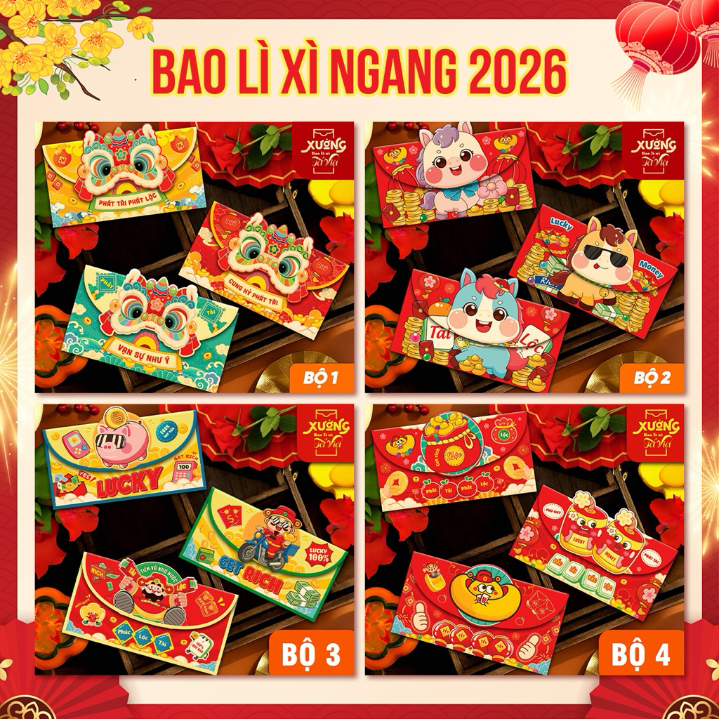 (Loại dày )Set 3 Bao lì xì Lân loại to, Bao Lì Xì Con Ngựa Bao Lì Xì Ngang, Bao lì xì bao thư 2026, Bao lì xì hot trend