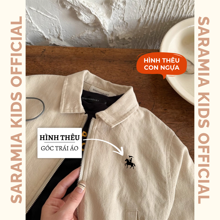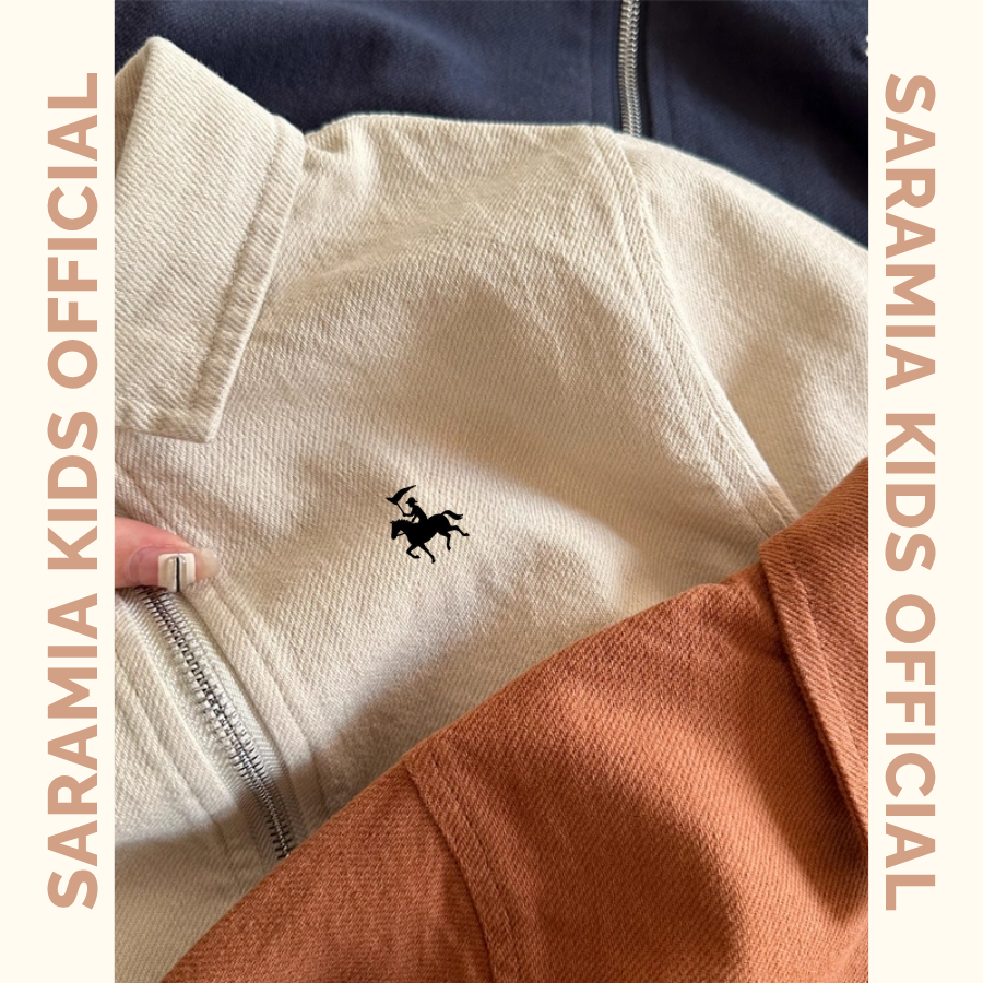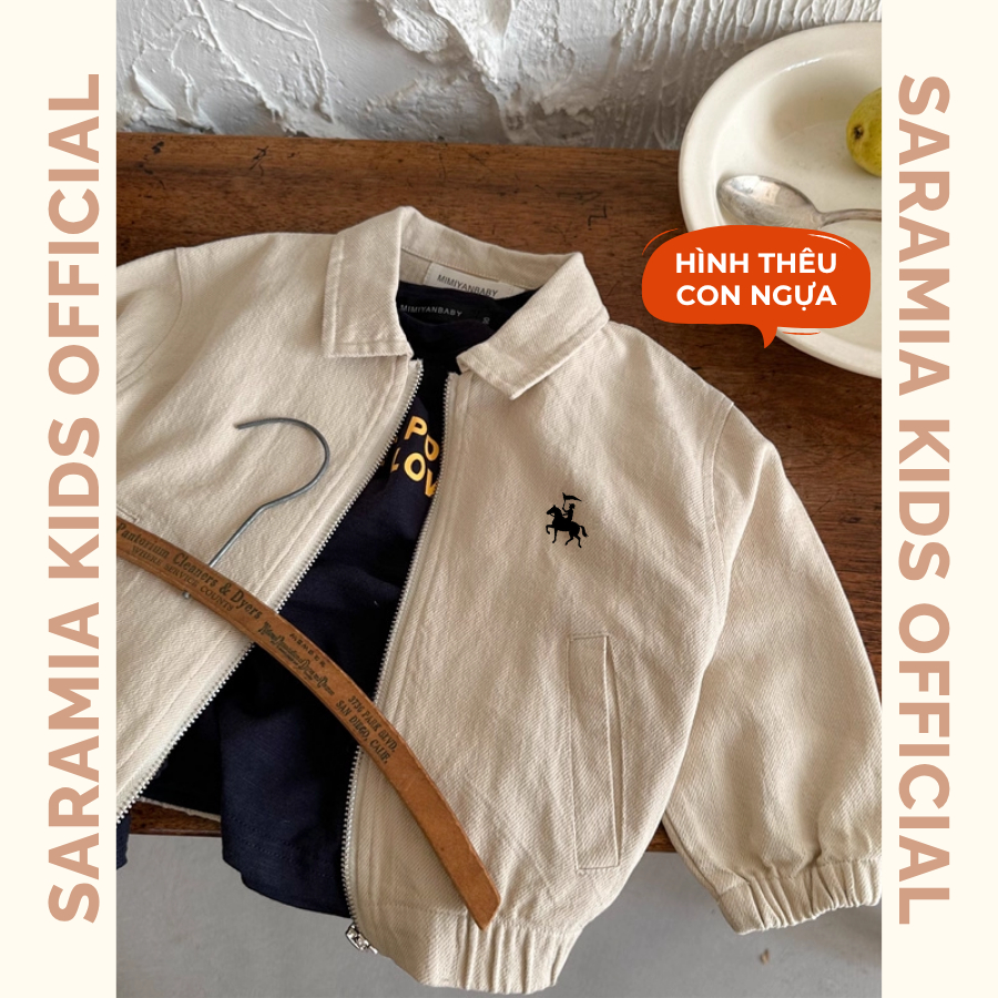 [AT11] Áo khoác kaki cho bé trai SARAMIA KIDS,dáng bomber cổ bẻ,khóa kéo tiện lợi,màu xanh navy thanh lịch