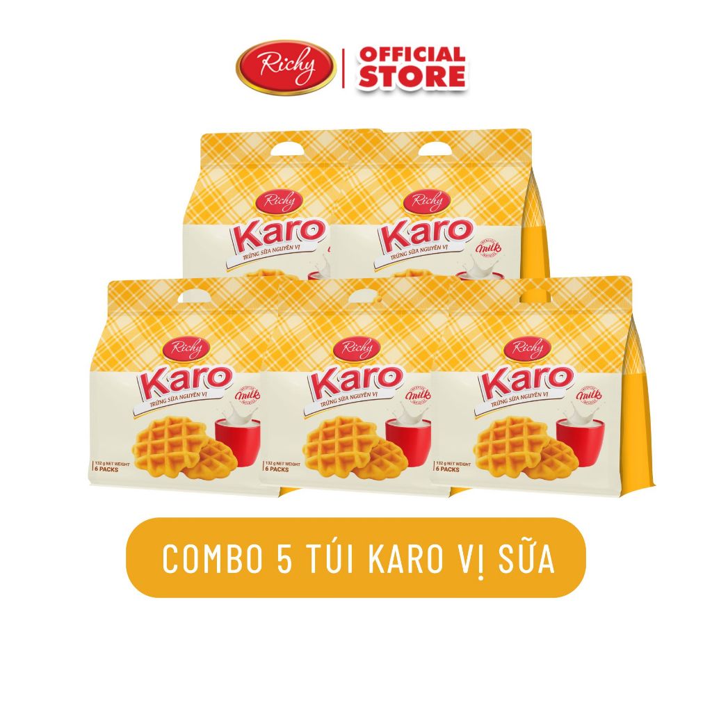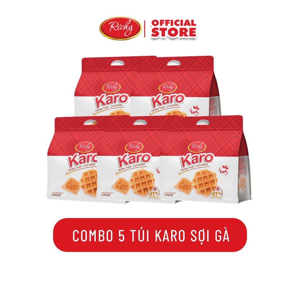 [VỊ SỮA MỚI] Combo 5 bịch bánh Karo chà bông sợi gà, Bánh ăn sáng, Bánh kẹo Richy, HSD 45 ngày