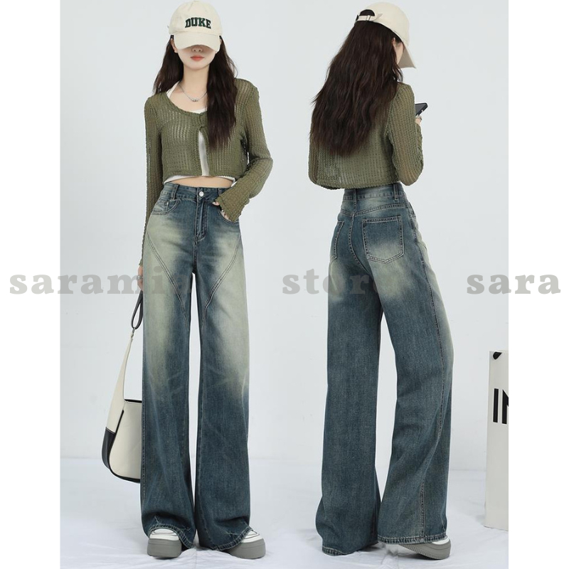 [DEAL HỜI] Quần bò ống rộng SARAMIA cạp cao nữ jean denim dáng suông dài kiểu dáng thời trang D13