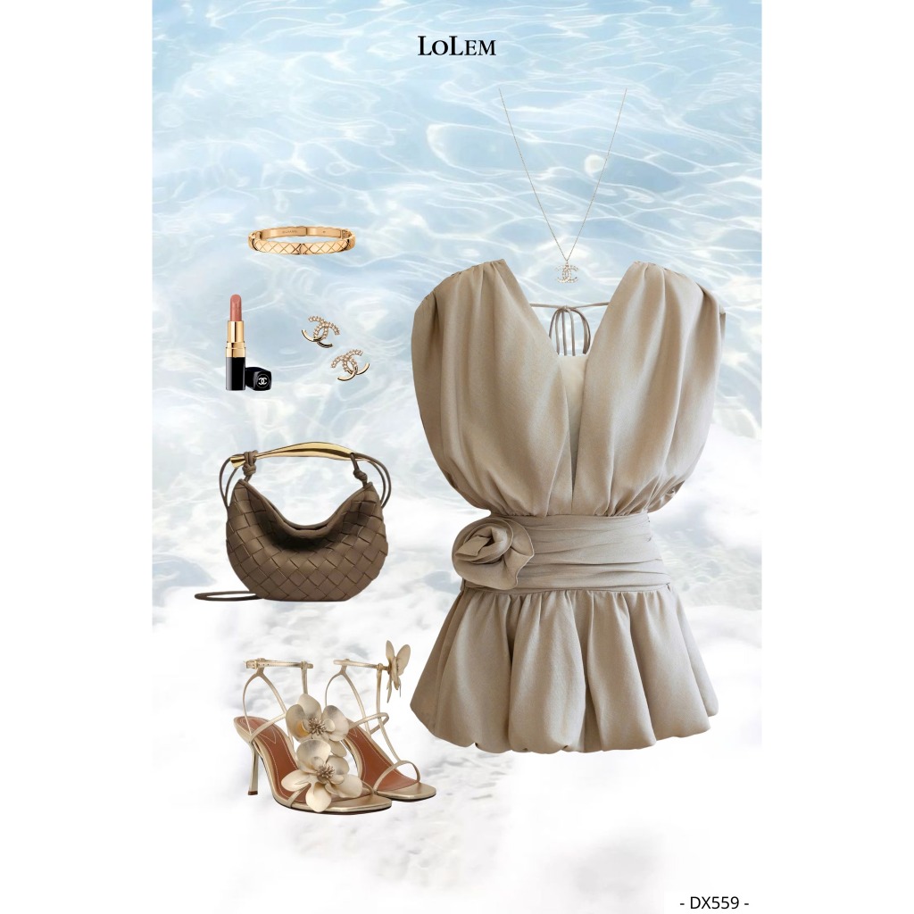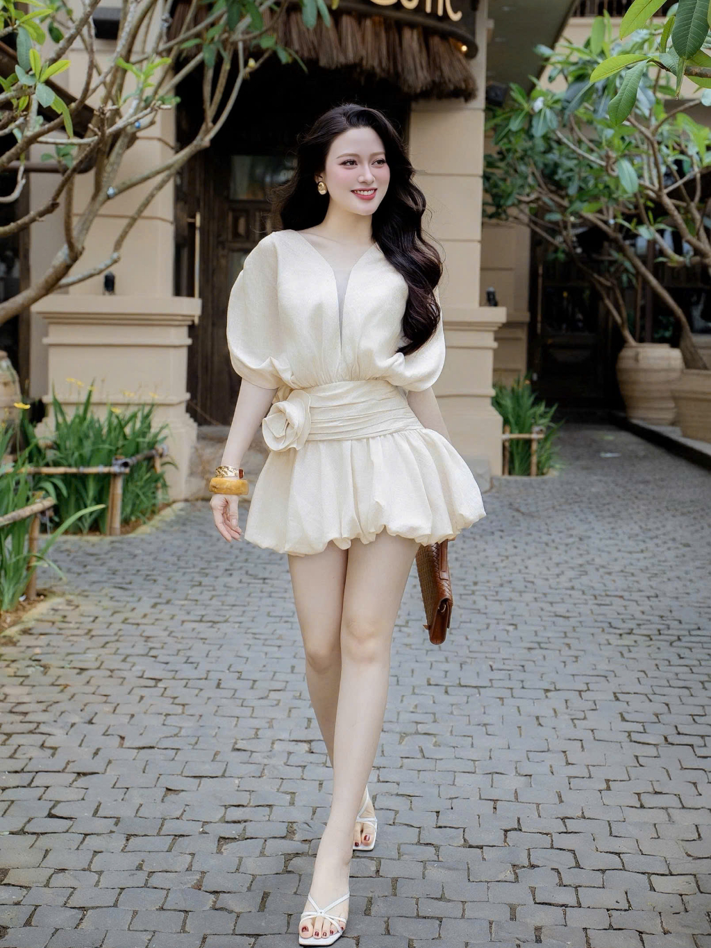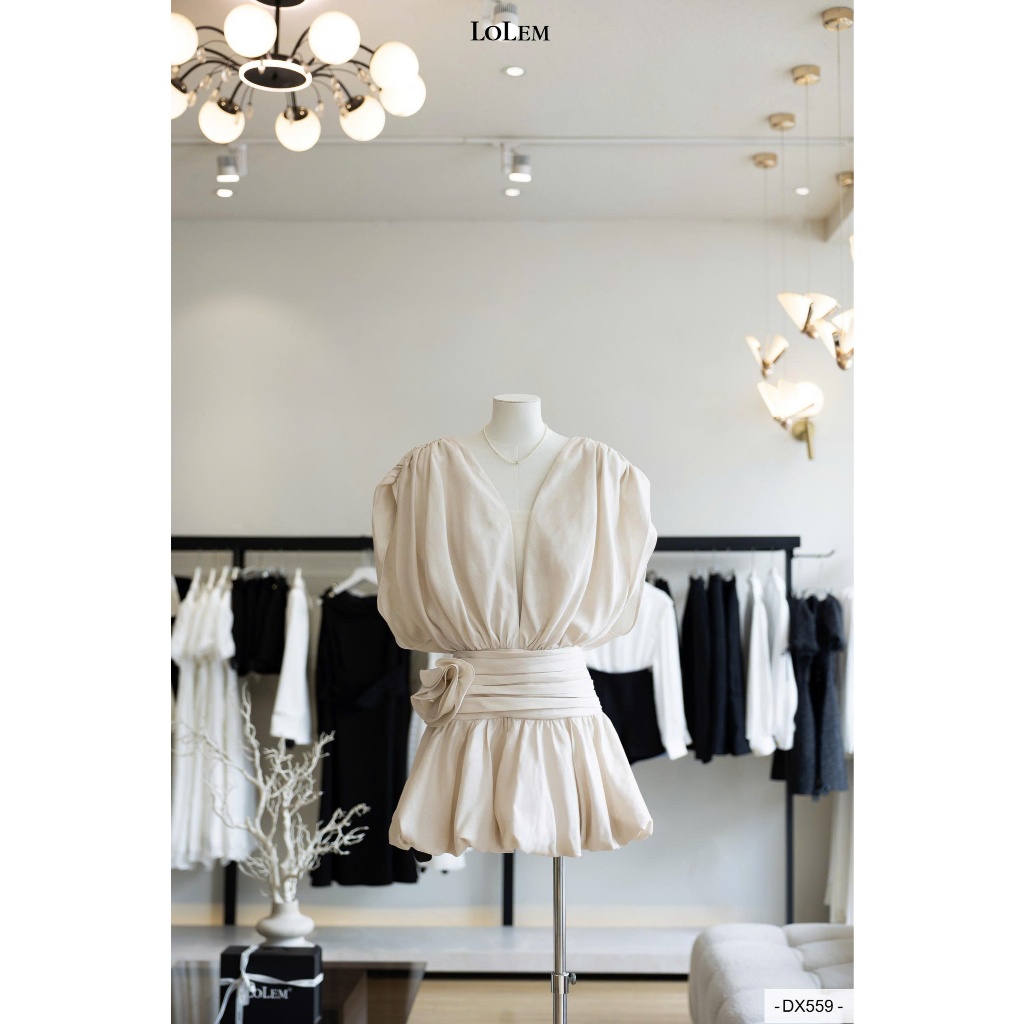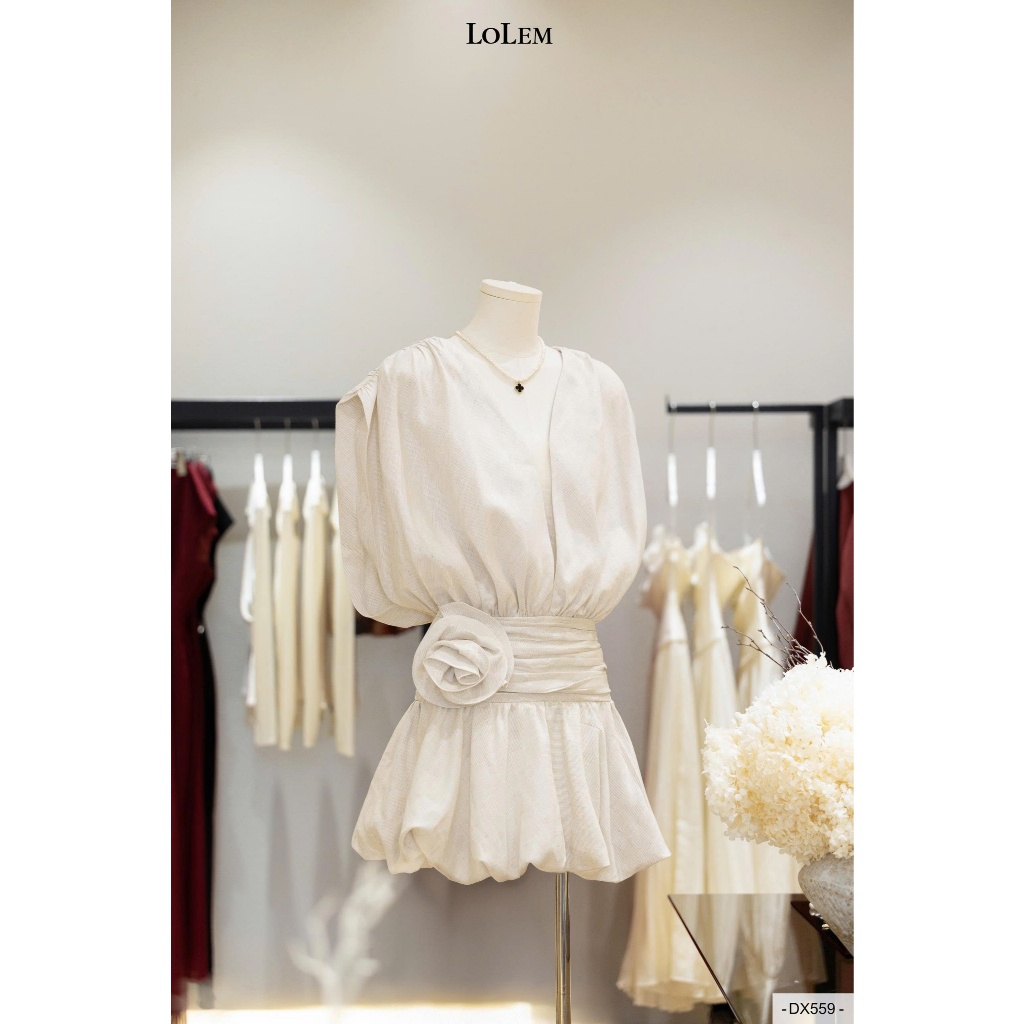 Đầm xòe dáng bí cổ chữ V LOLEM DX559 đi tiệc sự kiện phong cách trẻ trung thanh lịch