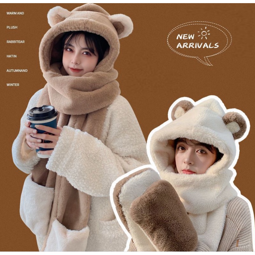 Khăn bông kèm mũ tai gấu hàng quảng,Kiểu dáng dễ thương, 2 lớp dày dặn giữ ấm hiệu quả(set 3 chi tiết khăn ,mũ,gang tay)