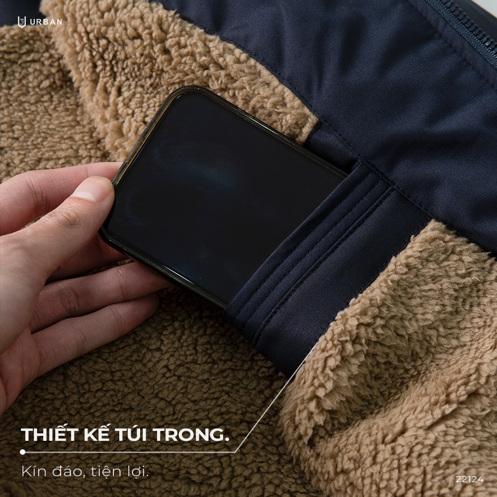 Áo khoác lót lông cừu nam URBAN cổ đứng vải gió dày dặn chống gió cản nước giữ ấm tốt NO. 22124