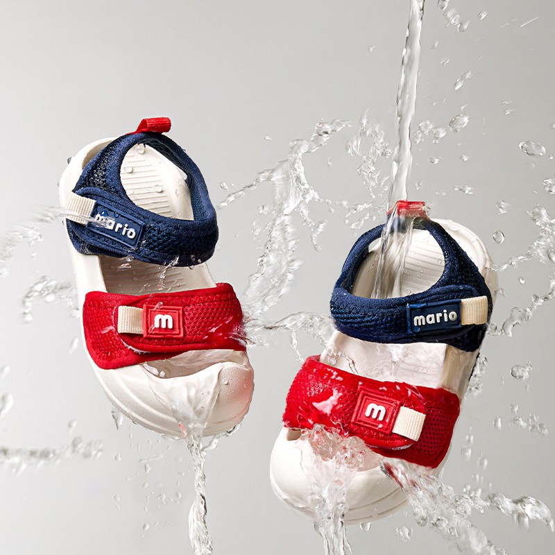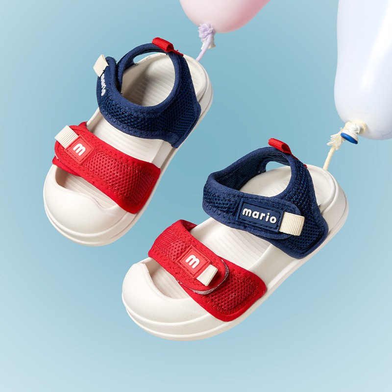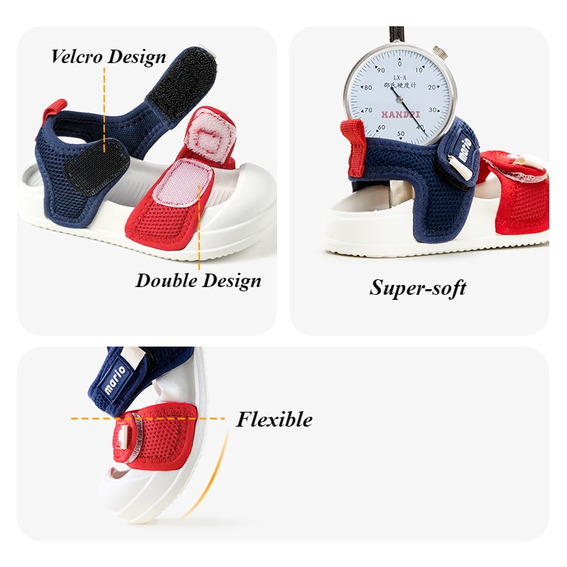 sandal Hai màu Cheerful Mario dép quai hậu Chống va đập cho bé tập đi mầm non