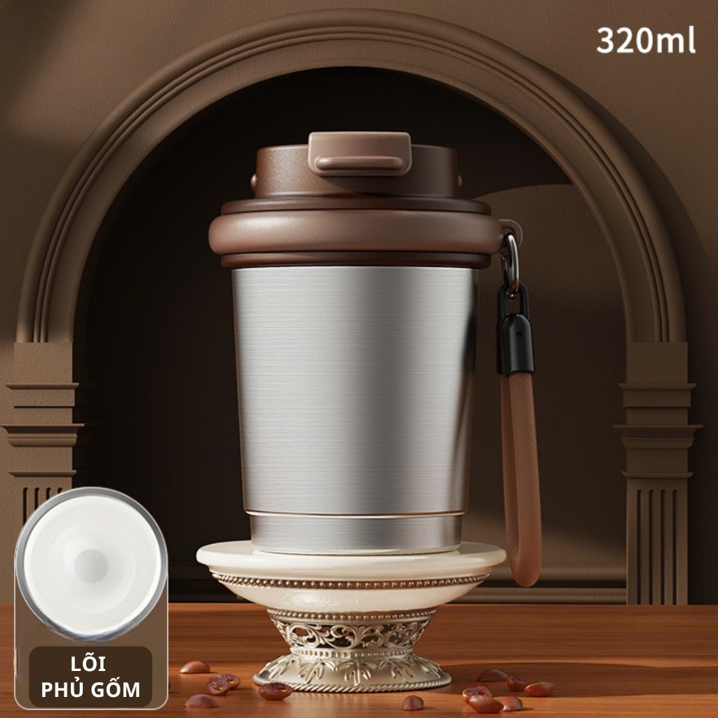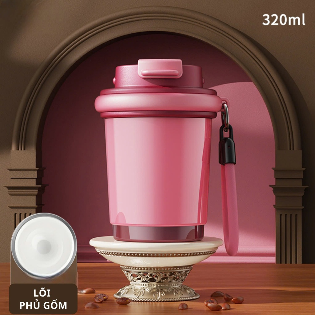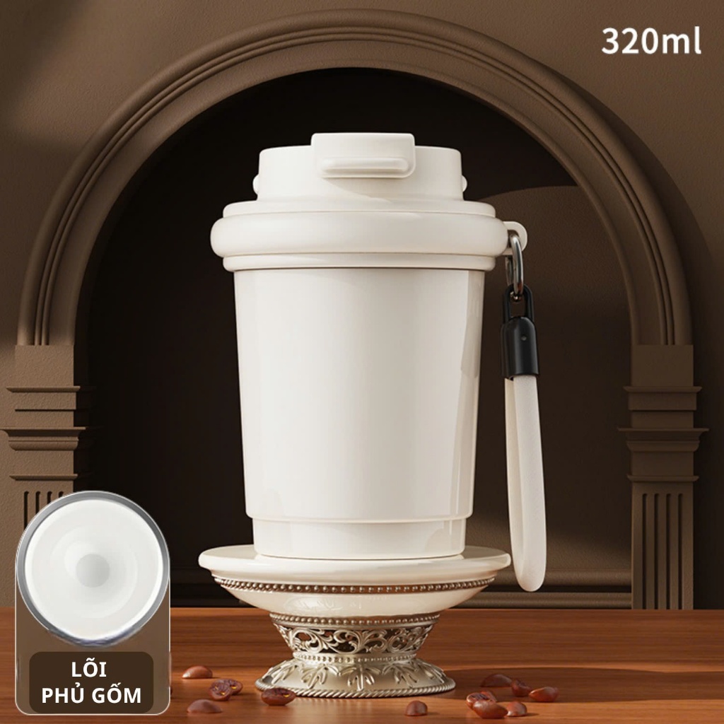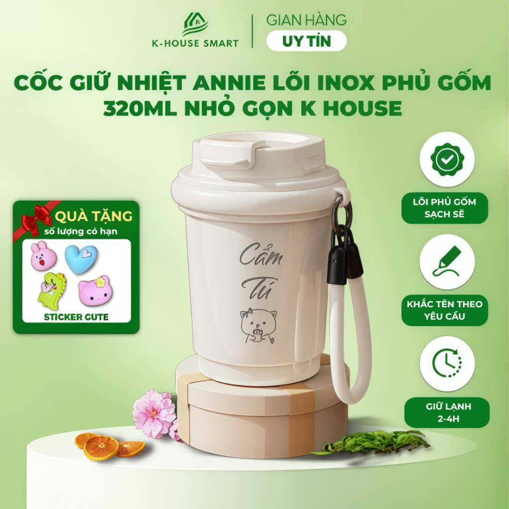 Cốc giữ nhiệt Annie inox 316 lõi phủ gốm K House Smart, bình uống nước cà phê 320ml – nhỏ gọn tặng kèm sticker