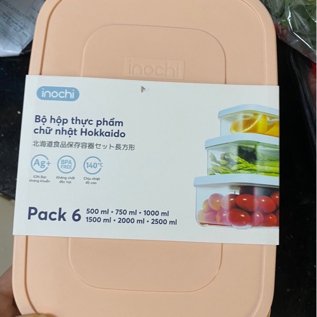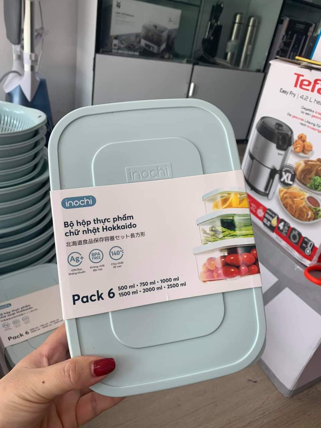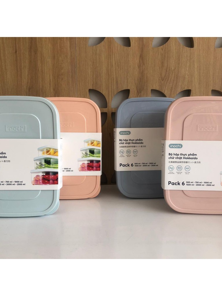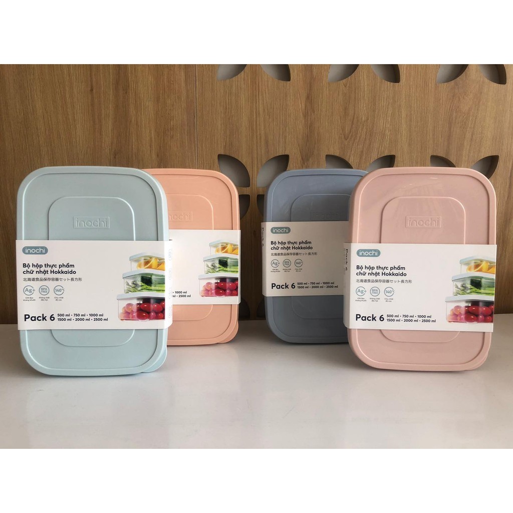 Bộ 6 hộp nhựa đựng thực phẩm chữ nhật Inochi (500-750-1000-1500-2000-2500ml)
