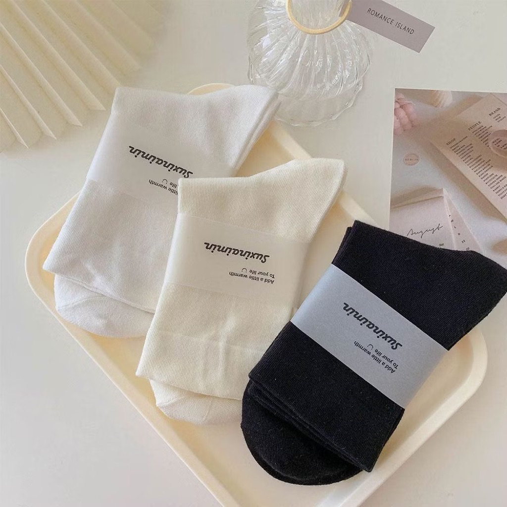 Sét 5 Đôi Tất Vớ Nam Nữ Cổ Cao Phong Cách Hàn Quốc chất Liệu Cotton
