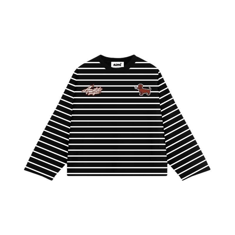 Áo Thun Tay Dài Sọc Ngang Thun Borip QC Long Sleeve Boxy AIMÉ Form Rộng Cổ Tròn "DOG - EUPHORIA" Unisex LA_BELLE_18