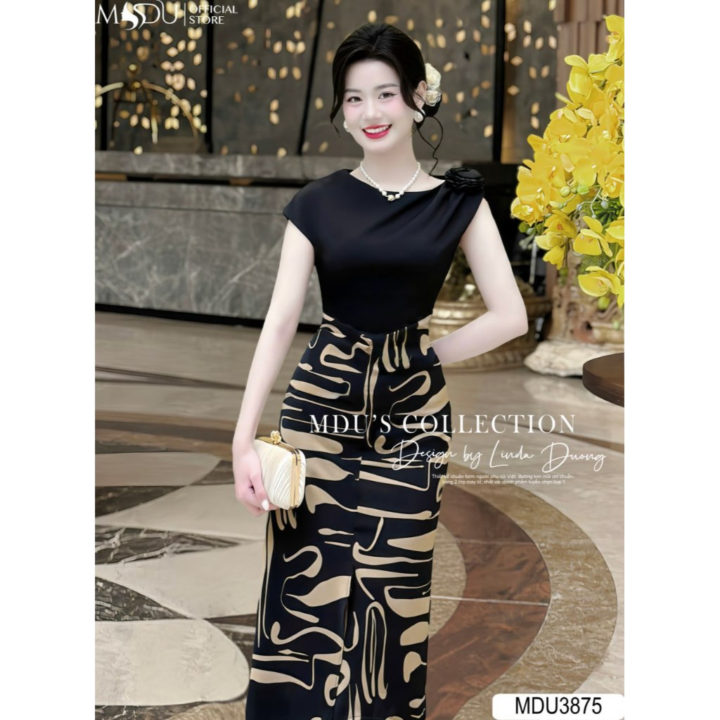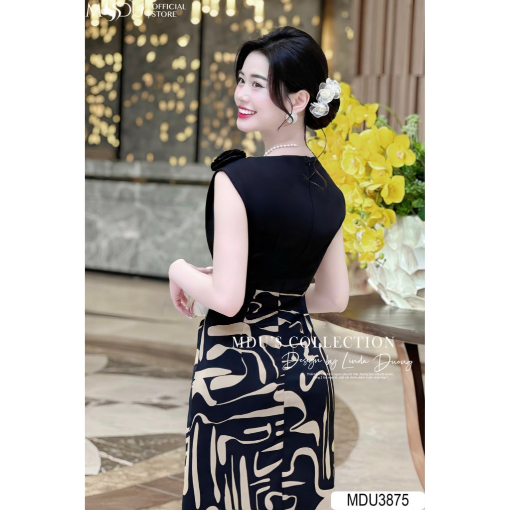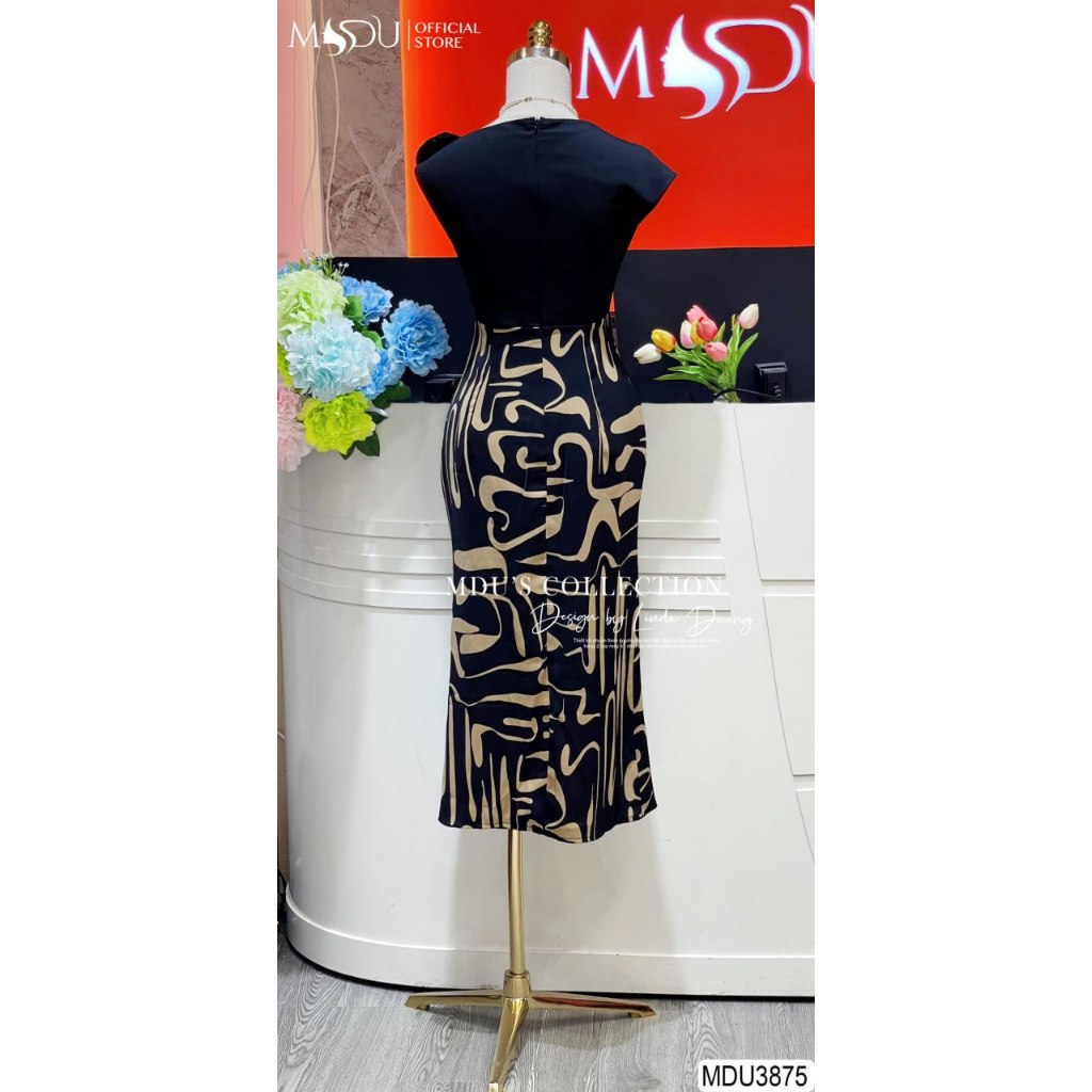 Váy Ôm Body MDU3875 Chất Liệu Xleo Phối Lụa Hàn Cao Cấp Họa Tiết Bắt Mắt Từ MDU K52-D1-1