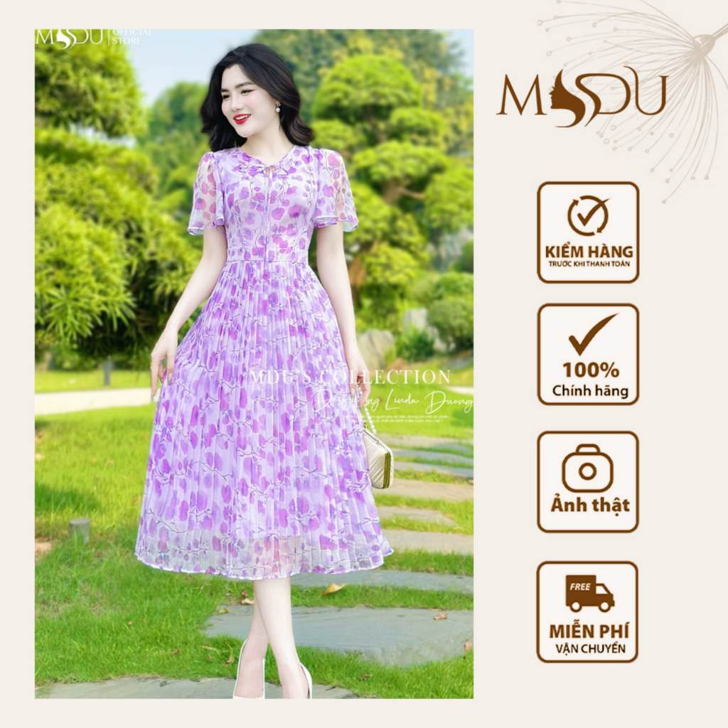 Váy Tơ Hàn MDU2945 Họa Tiết Hoa Nhiết Đới, Dáng Xòe Nhẹ Từ MDU K61-D1-4