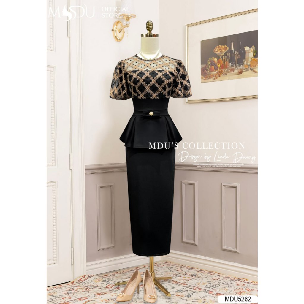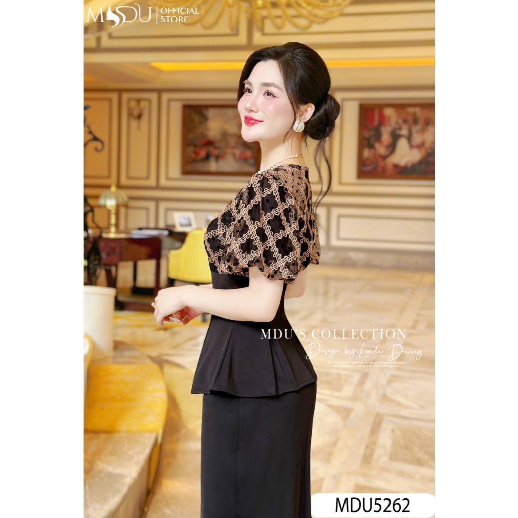 Váy Thiết Kế MDU5262 Mango Cao Cấp Phối Ren Caro Sang Trọng Ôm Dài Thanh Lịch Quý Phái Từ MDU