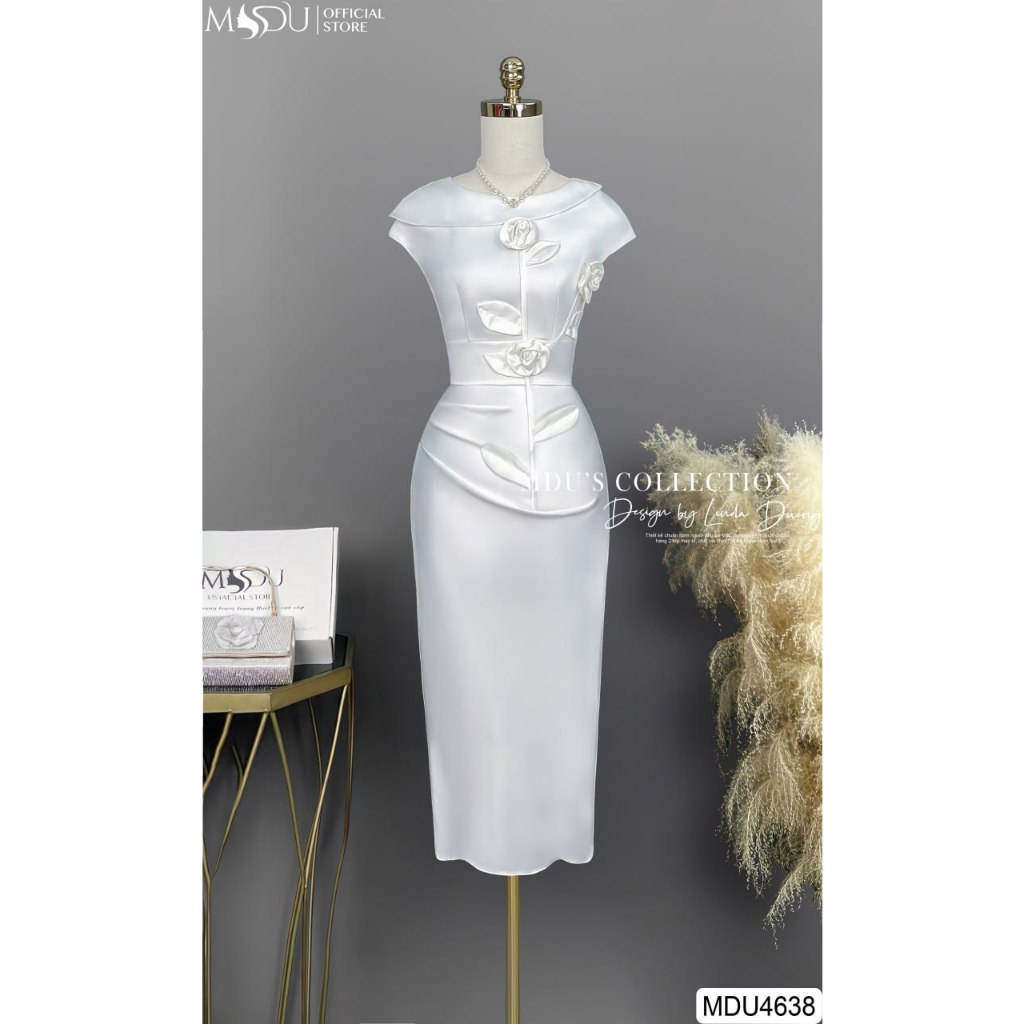 Váy Thiết Kế MDU4638 Với Hoa Trắng Thướt tha Yêu Kiều, Dáng Váy Xòe Nhẹ Nhàng Từ MDU