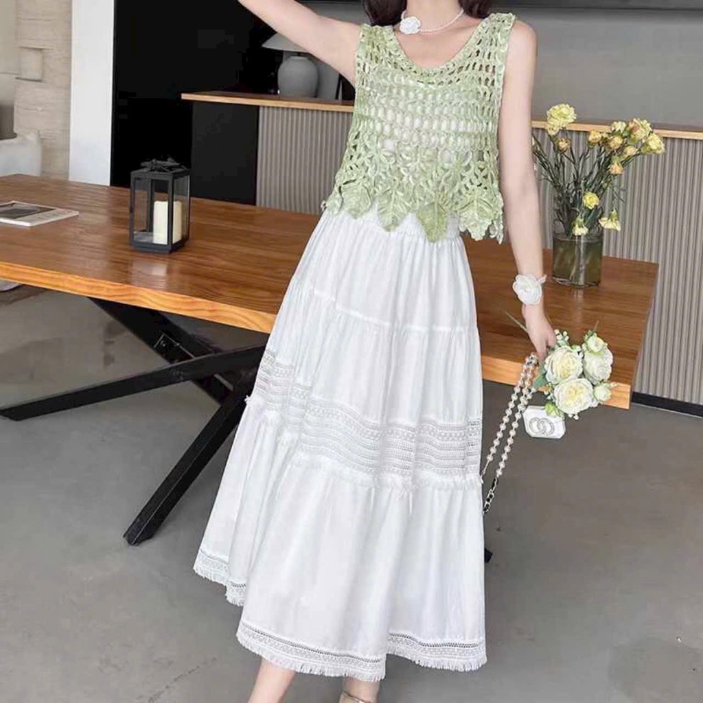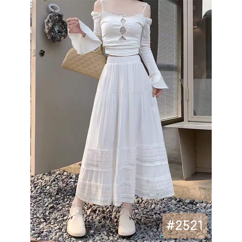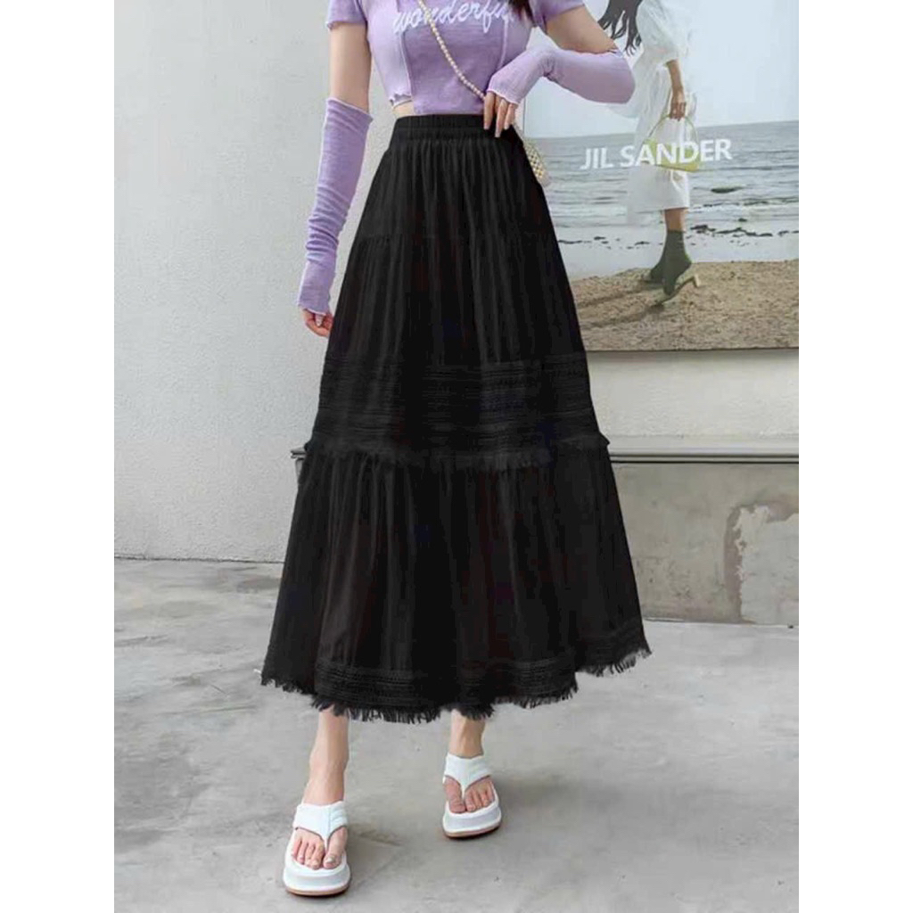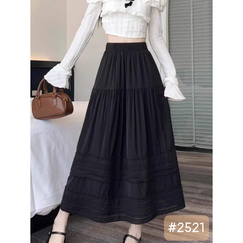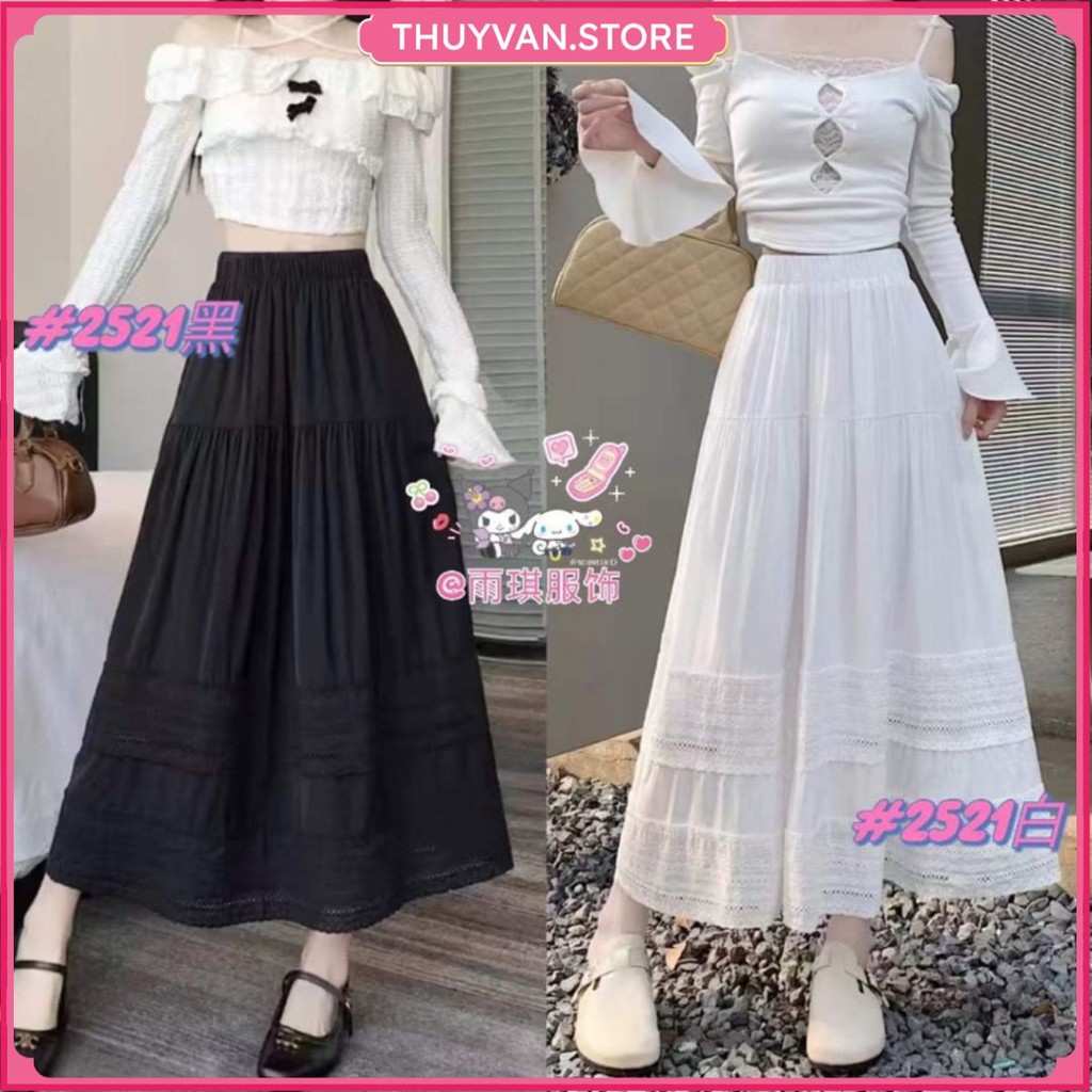 Chân váy xoè A dáng dài chất lụa boy phối ren hàng Quảng Châu new 2024