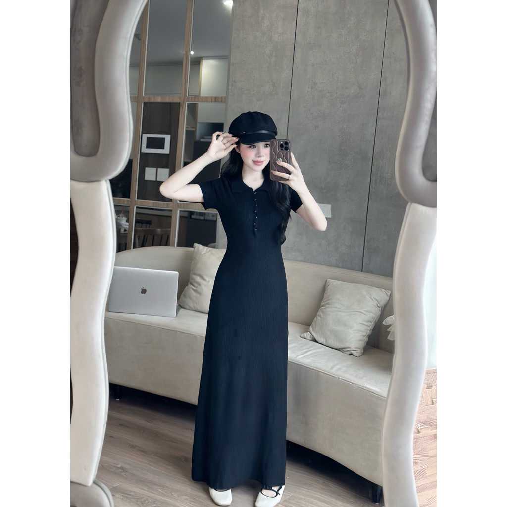 PETBYCHANG – Váy Len Polo Cổ Bẻ Khuy Xoắn Dáng Dài Basic Thanh Lịch