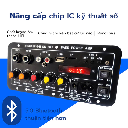🔥COD🔥Mạch Loa D10 Bluetooth 5.0 Hát Karaoke Công Suất Lớn 120w,12V/24V/220V lắp loa kéo (bao gồm đầy đủ phụ kiện)