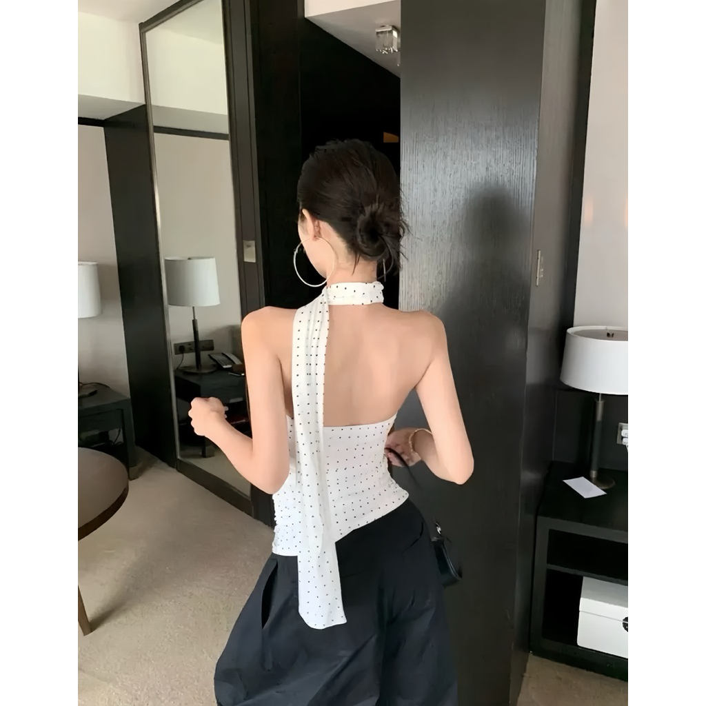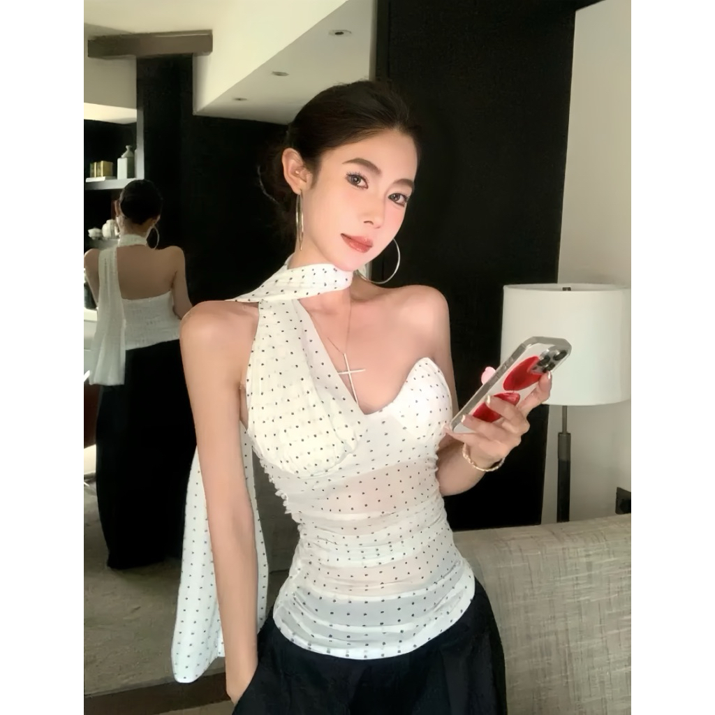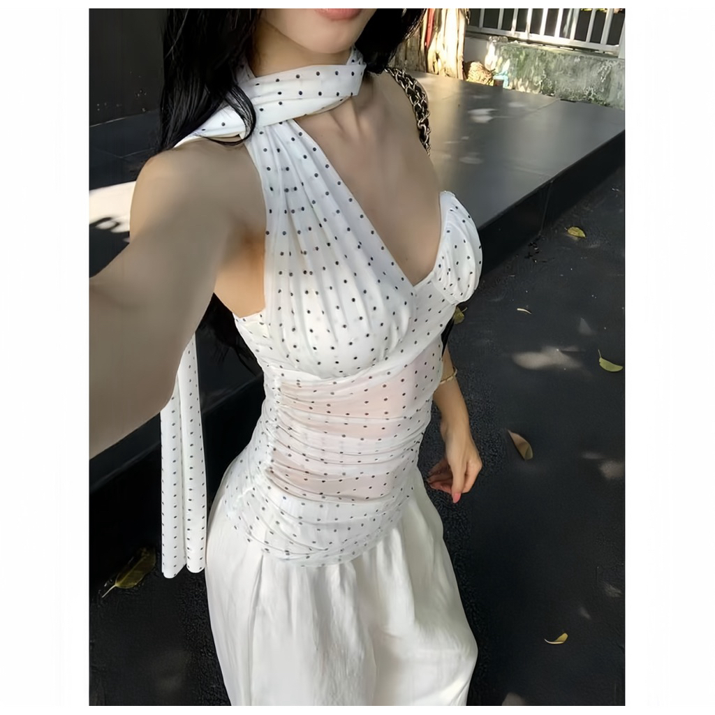 Áo Chấm Bi Cách Điệu, Áo Yếm Kèm Khăn Có Mút Ngực Mặc Đi Chơi Đi Tiệc Dễ Phối Đồ