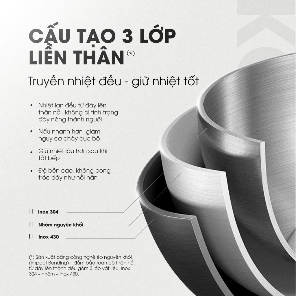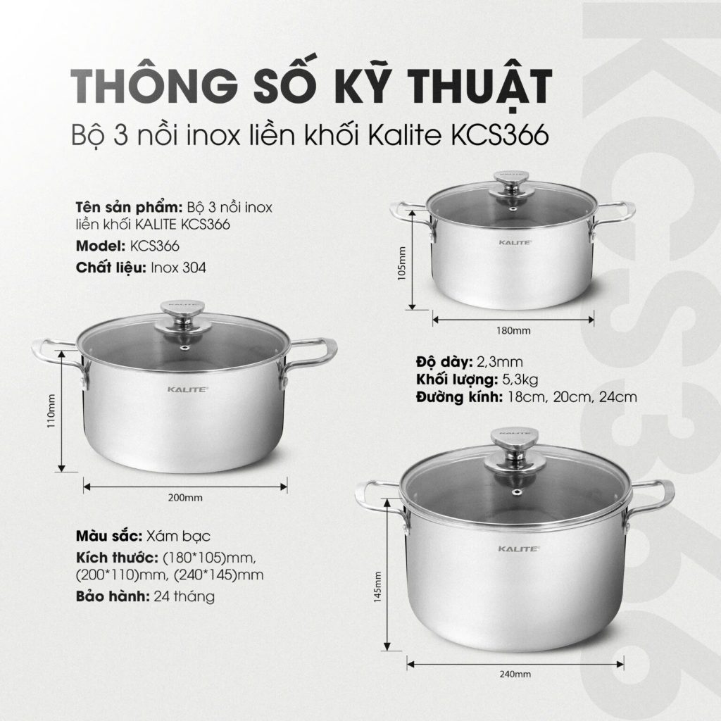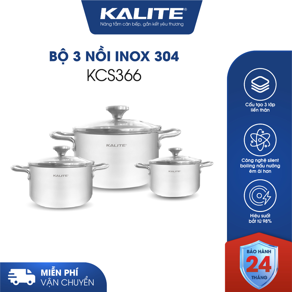 (Võ Hà Linh x Kalite) Bộ 3 nồi inox liền khối KALITE KCS366 – 3 size 18-20-24cm linh hoạt, inox 304 cao cấp