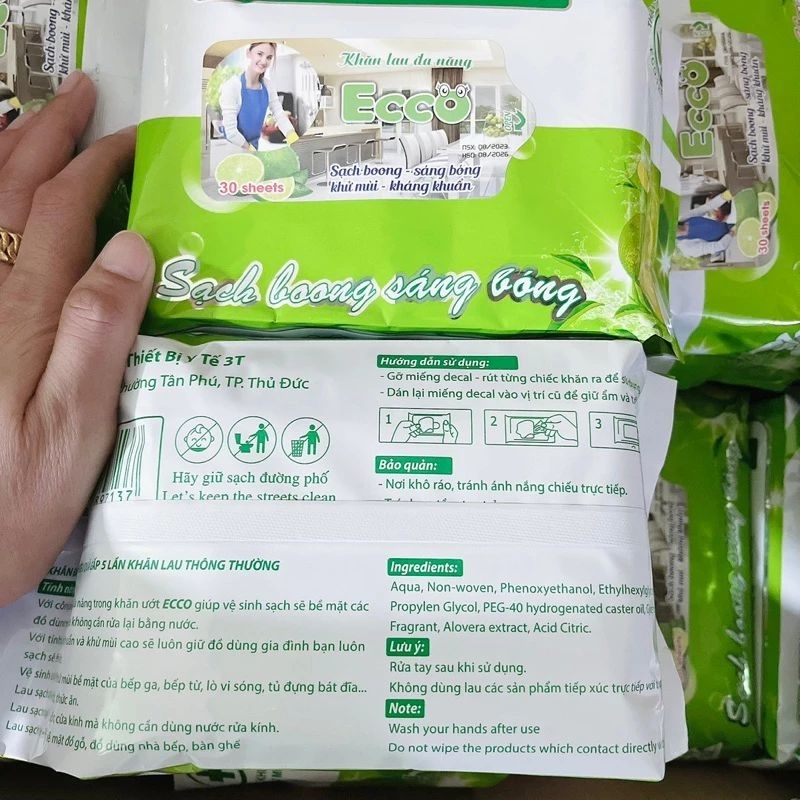 Khăn Ướt Lau Bếp Đa Năng ECCO Kháng Khuẩn, Khử Mùi Hôi Kích Thước 25×32( 800gr)