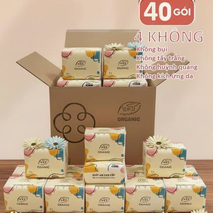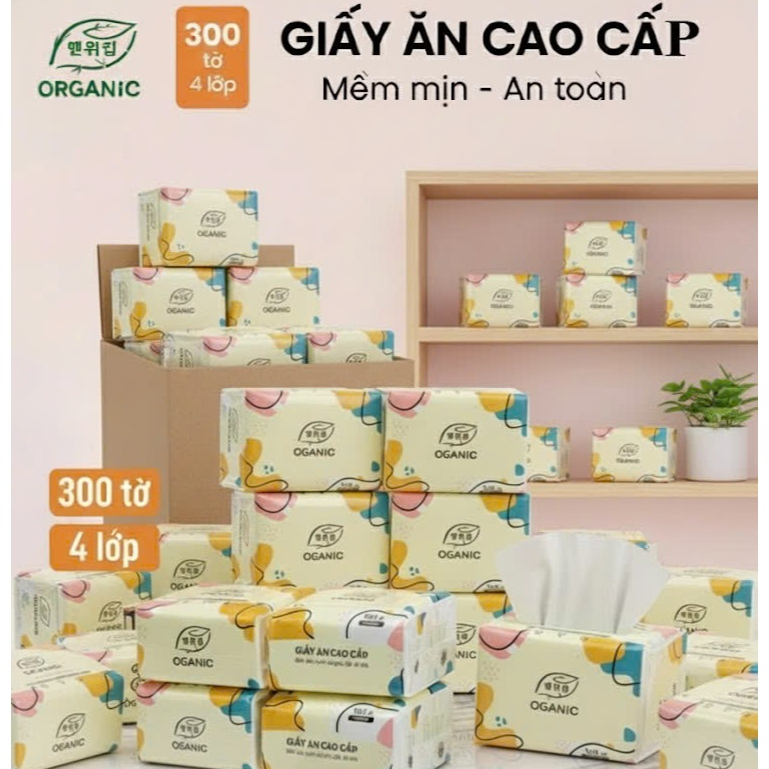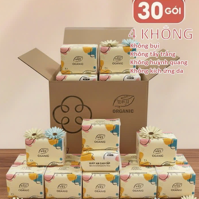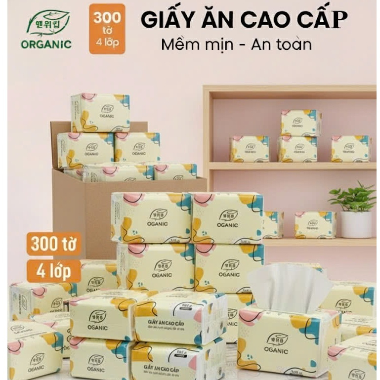 Free Ship - Thùng giấy ăn đa sắc Oganic giấy 3 lớp dai mịn