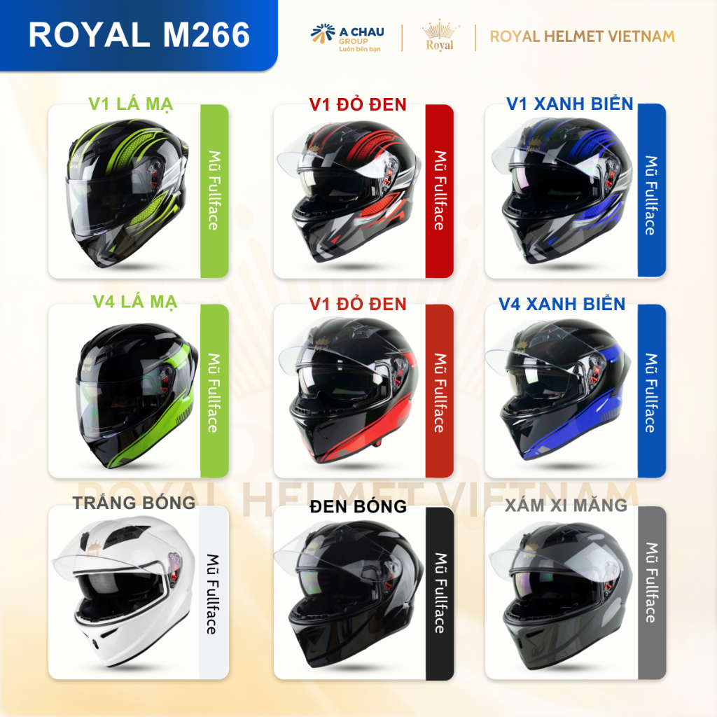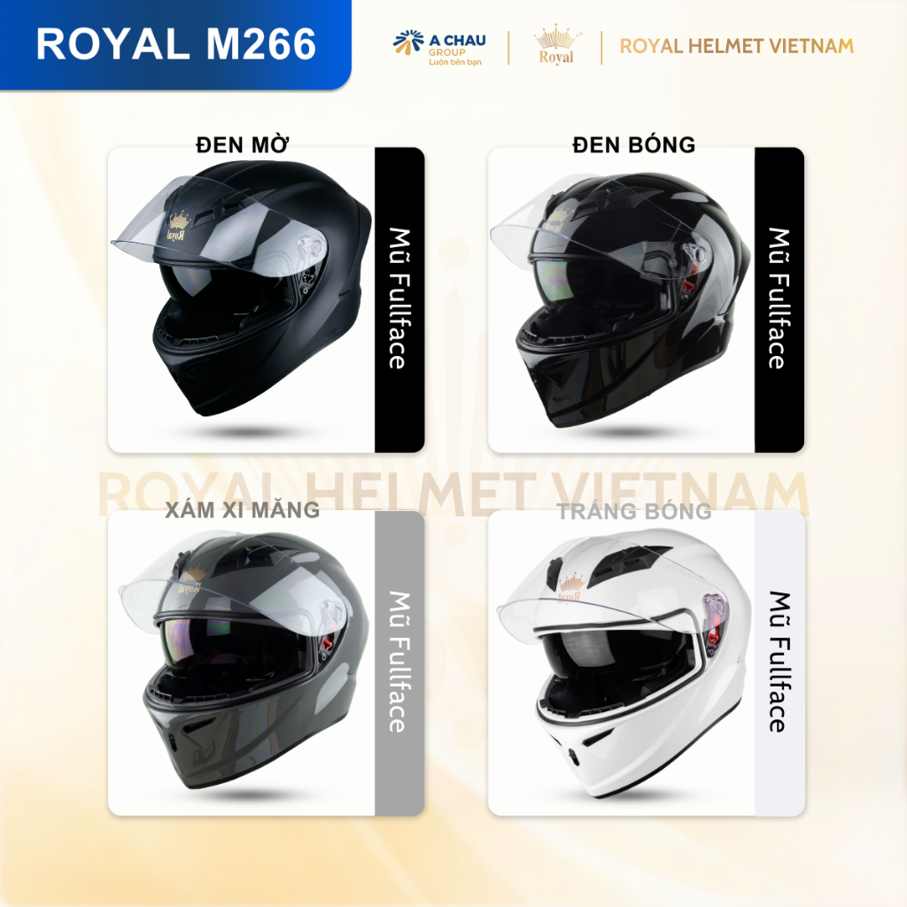 [NHÀ SẢN XUẤT] Mũ Bảo Hiểm Fullface Royal M266 Trơn 2 Kính Chính Hãng, Nón Bảo Hiểm Đi Phượt Fullface Cao Cấp